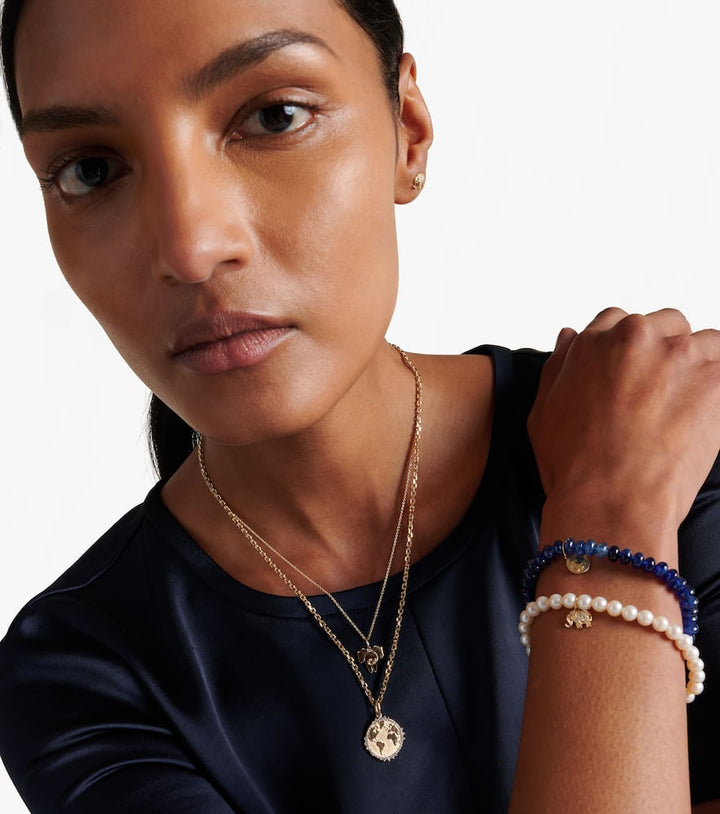 This Sydney Evan Elephant Tail Necklace by Sydney Evan exudes playful sophistication with its delicately detailed elephant tail pendant, embodying wisdom, good fortune, and strength. The minimalist silhouette paired with a single sparkling diamond adds a subtle shimmer, making it ideal for everyday wear or layering with other fine chains. Adjustable for a perfect fit, this piece balances youthful charm with luxurious craftsmanship, capturing the signature Sydney Evan aesthetic of modern elegance fused with symbolic storytelling, allowing the wearer to carry a meaningful talisman close to the heart.