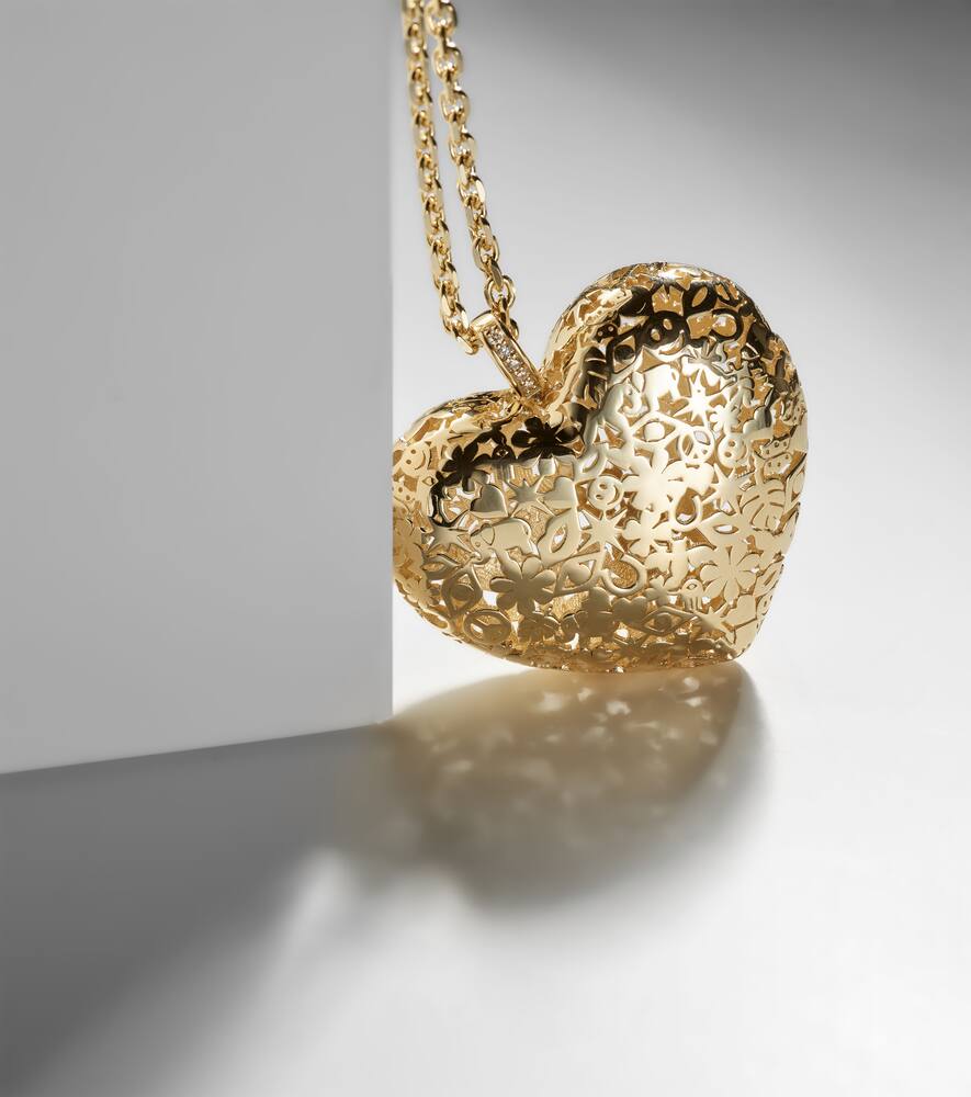 Puffy Icon Wallpaper Heart 14kt gold necklace with diamonds