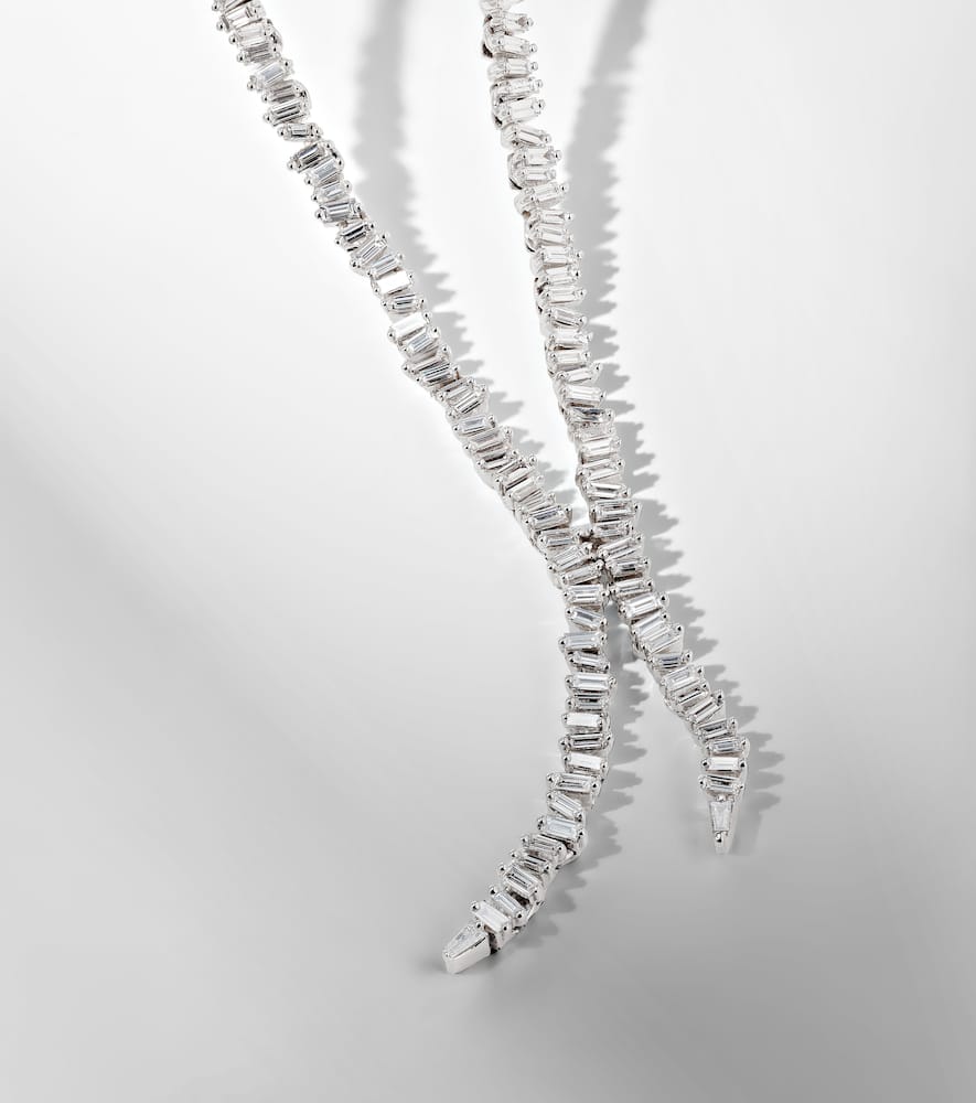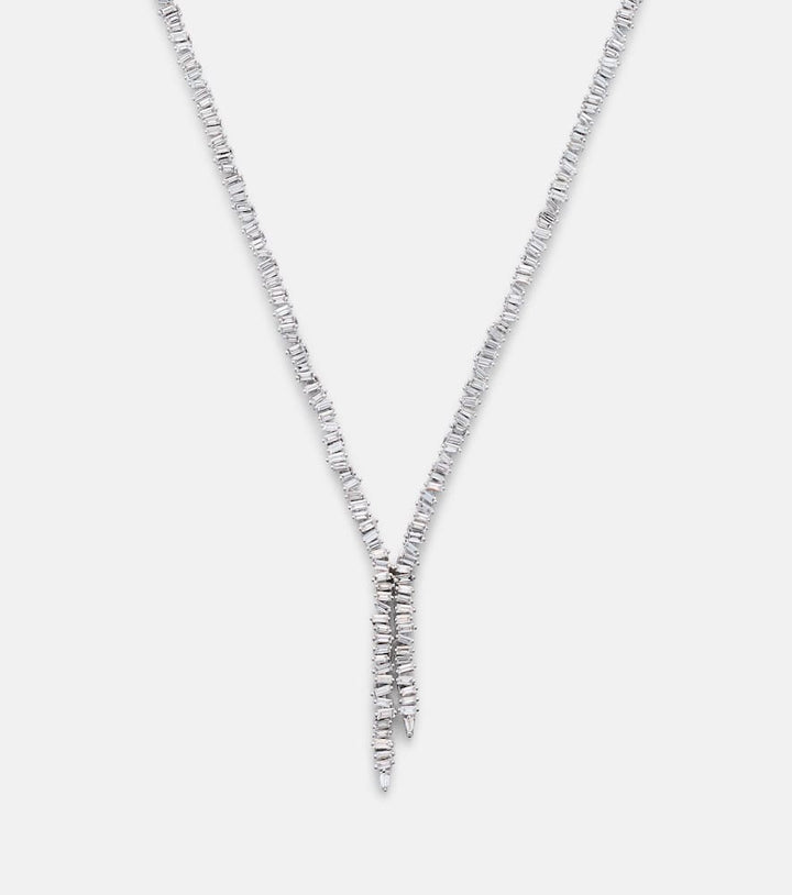 This Suzanne Kalan White Gold Necklace with Diamonds by Suzanne Kalan embodies radiant elegance and meticulous craftsmanship. Featuring 5.50ct of baguette-cut diamonds in a prong setting, it offers timeless sparkle and sophistication suitable for both formal and casual occasions. The necklace’s linear design conveys clarity, refinement, and modern luxury, aligning with Suzanne Kalan’s vision of architectural jewelry artistry. Ideal for layering or wearing alone as a statement piece, it symbolizes brilliance and resilience, making it a perfect representation of both aesthetic grace and emotional depth in high-end jewelry.