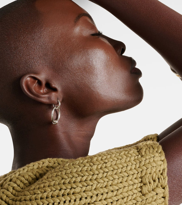 These Spinelli Kilcollin Sirius Versa Hoop Earrings in sterling silver and 18kt yellow gold merge mixed-metal artistry with modern design. Their 17mm diameter and 5mm width create a bold yet wearable silhouette. Perfect for everyday elegance or stacking, they reflect the brand’s commitment to versatile, architectural jewelry. The combination of sterling silver and gold annulet provides contrast, visual depth, and polished sophistication, making these hoops a refined, contemporary statement accessory that balances modern craftsmanship with high jewelry aesthetics.
