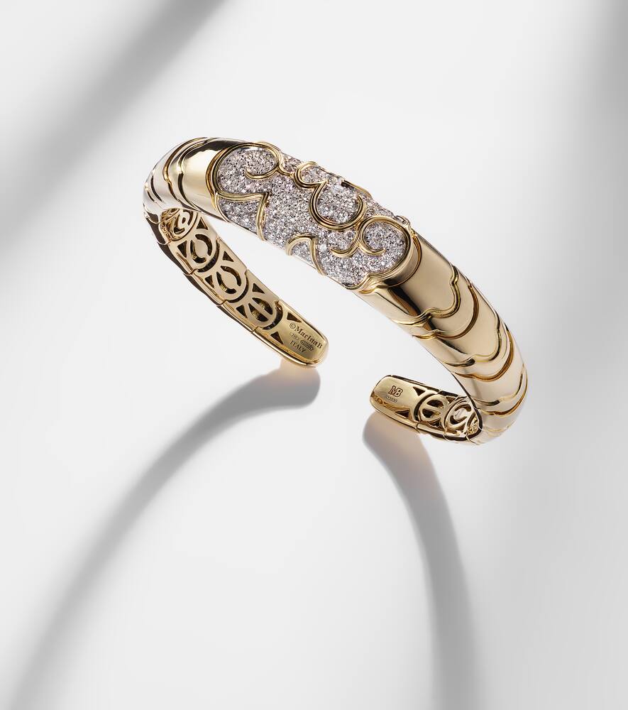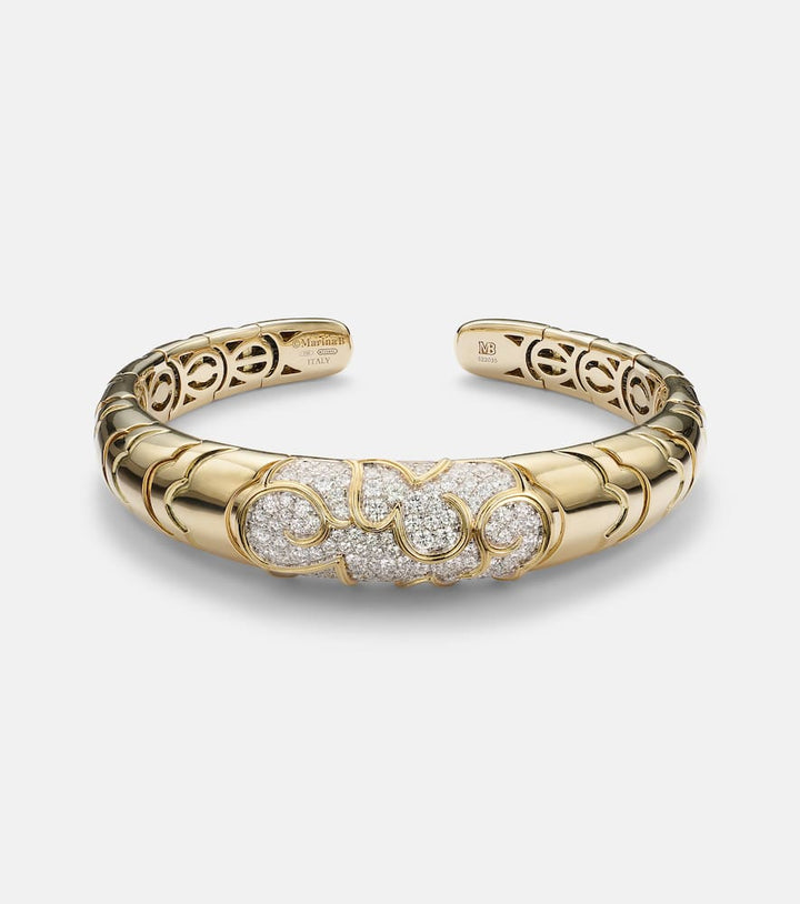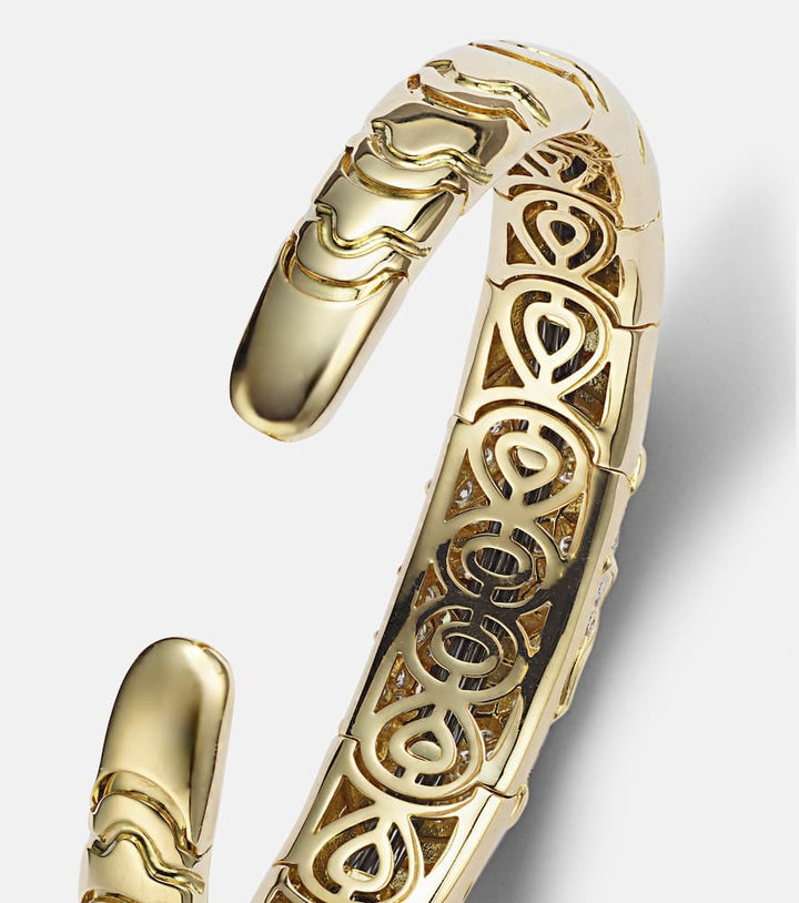 Handcrafted in 18kt yellow gold with brilliant-cut pavé-set diamonds totaling 1.52ct. Max width 13 mm (0.5"); circumference 17 cm (6.5"); opening 1.5 cm (0.5"). Made in Italy.