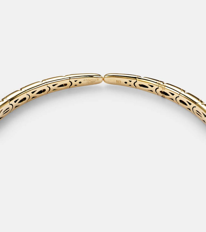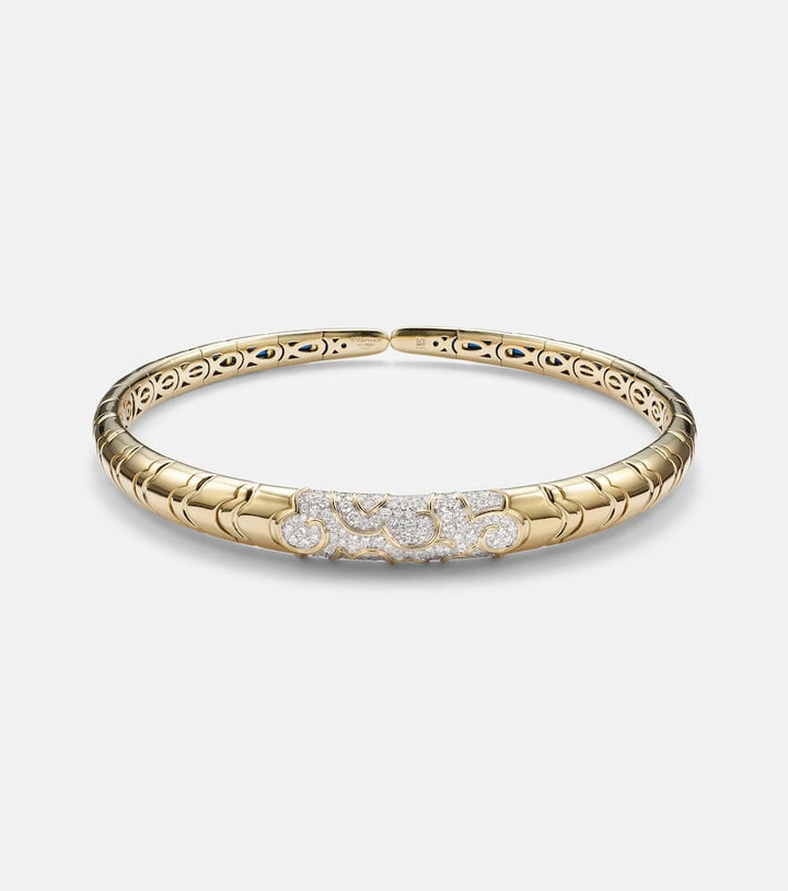 Handcrafted in 18kt yellow gold with round-cut pavé-set diamonds totaling 3.28ct. Max width 12 mm (0.45"); circumference 33 cm (13"). Made in Italy.