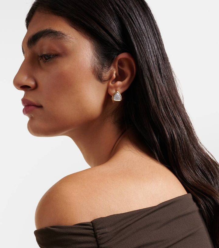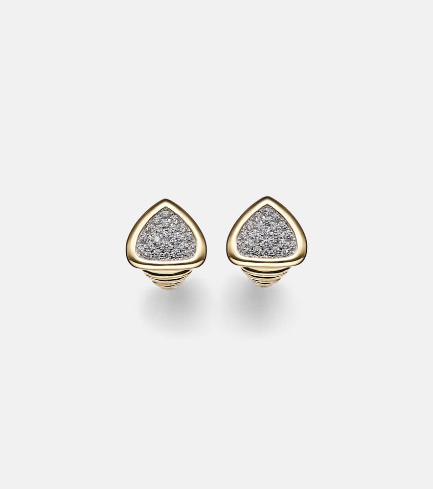 These Marina B Trisola Earrings in 18kt Yellow Gold by Marina B showcase sculptural elegance with a contemporary edge. Featuring 0.71ct of round-cut pavé diamonds (VVS-VS clarity, D-F color), their 13mm width and polished gold finish create a versatile statement for pierced ears. Designed with a secure clasp fastening, they combine wearable luxury with architectural sophistication. Perfect for day-to-night styling or stacking with other pieces, these earrings reflect Marina B’s mastery of high jewelry craftsmanship, offering a luminous, modern accessory that embodies refinement, sparkle, and enduring elegance.