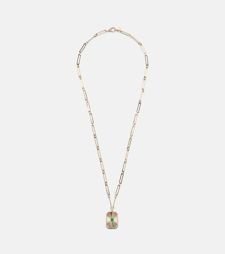 18kt gold Radiant Deco pendant necklace with emerald and diamonds