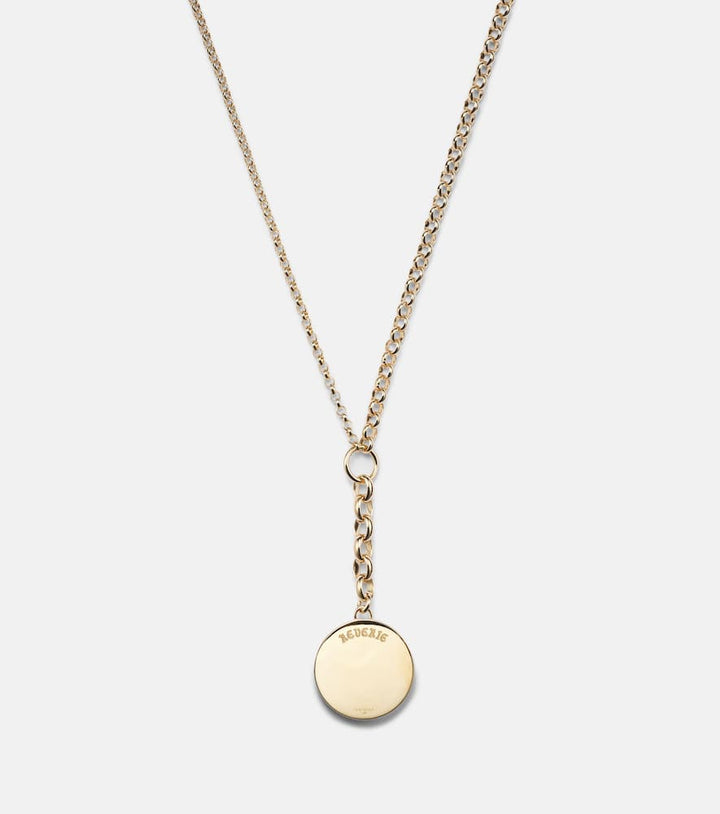 This FoundRae Reverie Pendant Necklace in 18kt Yellow Gold features 0.0503ct round-cut pavé diamonds on a 2–3mm adjustable chain. Pendant measures 61x21mm, creating a sleek, architectural silhouette. Polished gold highlights diamond brilliance while showcasing FoundRae’s precision craftsmanship and contemporary design. Ideal for layering or standalone wear, it merges wearable luxury with subtle sparkle, delivering a refined, versatile accessory that embodies modern elegance, high-quality artistry, and sculptural sophistication in a luminous, statement-making necklace.