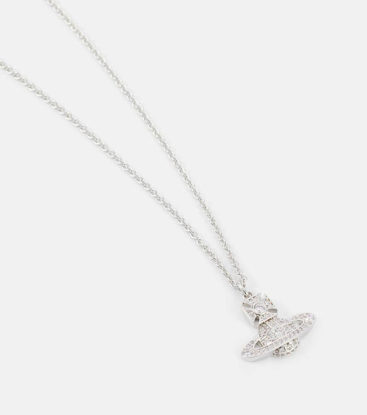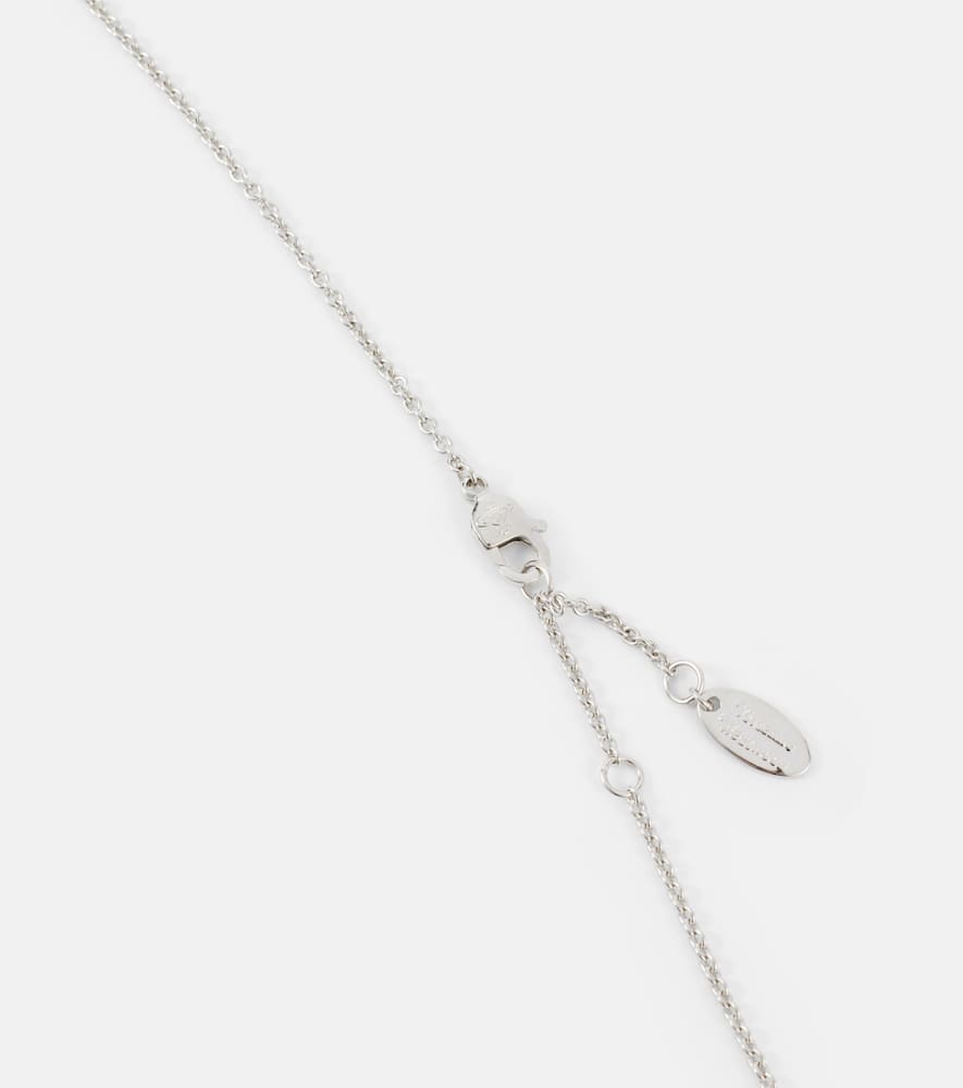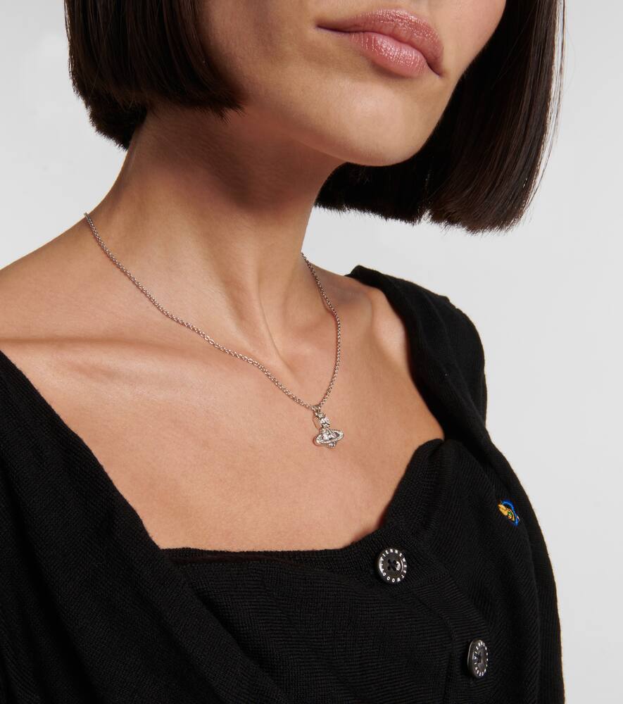 This Vivienne Westwood Orb Pendant Necklace in 100% Brass showcases sculptural modern design with a 1.5x2cm pendant and adjustable 43cm chain. Polished silver-toned finish emphasizes contemporary luxury and architectural elegance. Perfect for layering or statement wear, the piece reflects Vivienne Westwood’s distinctive aesthetic, combining wearable artistry with iconic design. This necklace is a versatile accessory offering modern sophistication, sculptural charm, and bold yet refined elegance for any jewelry collection.
