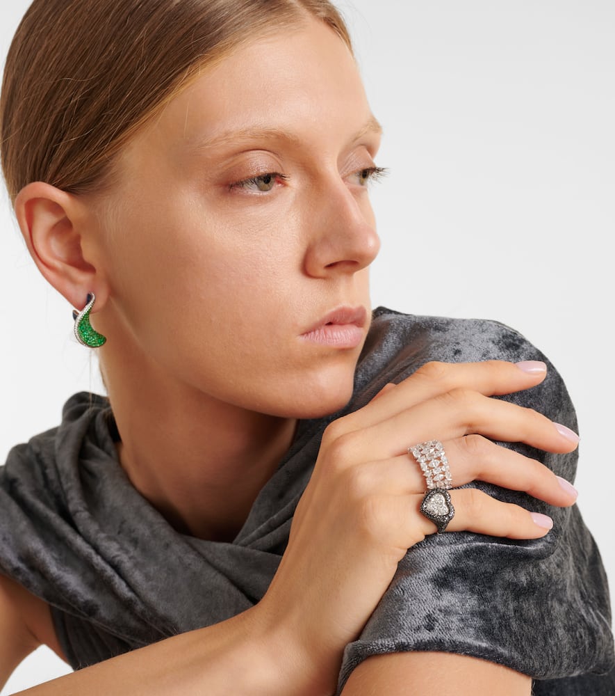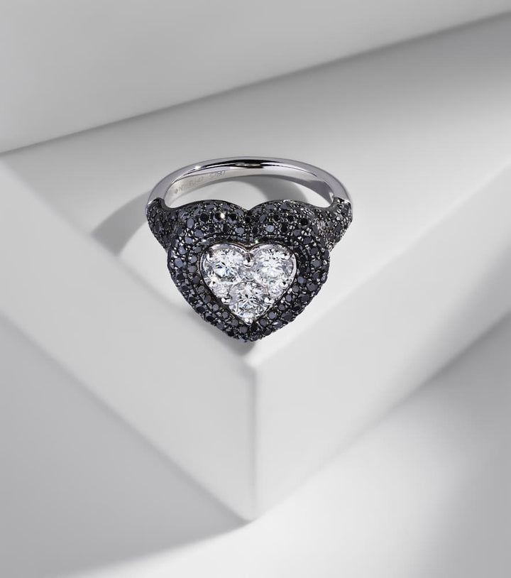 This Kamyen Manaal Ring in 18kt White Gold features pavé and prong-set diamonds totaling 5.67ct, combining sculptural elegance with high jewelry craftsmanship. Max width 18mm, available in sizes US 3–6. Perfect as a statement or stacking piece, it reflects contemporary design, luminous sparkle, and wearable sophistication.
