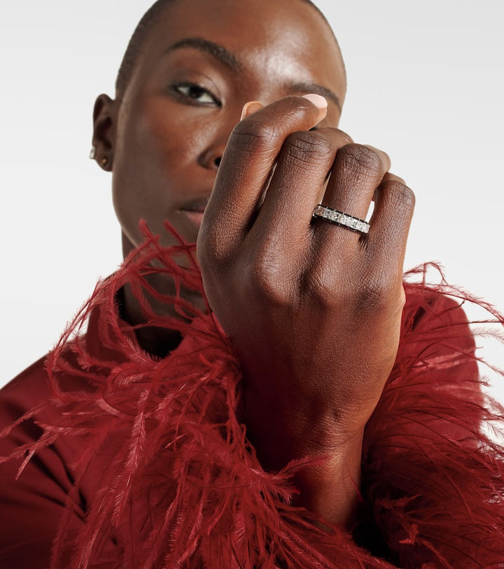 Handcrafted in 18kt white gold with diamonds totaling 8.52ct (VS1 clarity). Max width 5 mm (0.2'); available sizes US 3–8. Made in India.