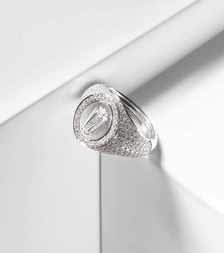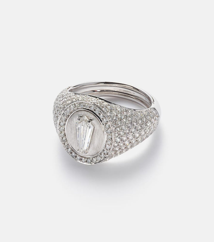 This Kite 18kt White Gold Ring by Kamyen embodies modern sophistication with a bold, architectural design. Set with an impressive 5.04ctw of VVS-VS clarity diamonds in a combination of pavé and prong settings, it radiates brilliance from every angle. The substantial width and sculptural form convey strength and confidence, making it a statement piece that enhances any ensemble. Ideal for special occasions or as a symbol of enduring elegance, this ring reflects Kamyen’s commitment to meticulous craftsmanship and high-quality gemstones.