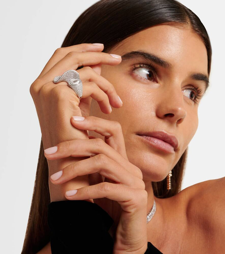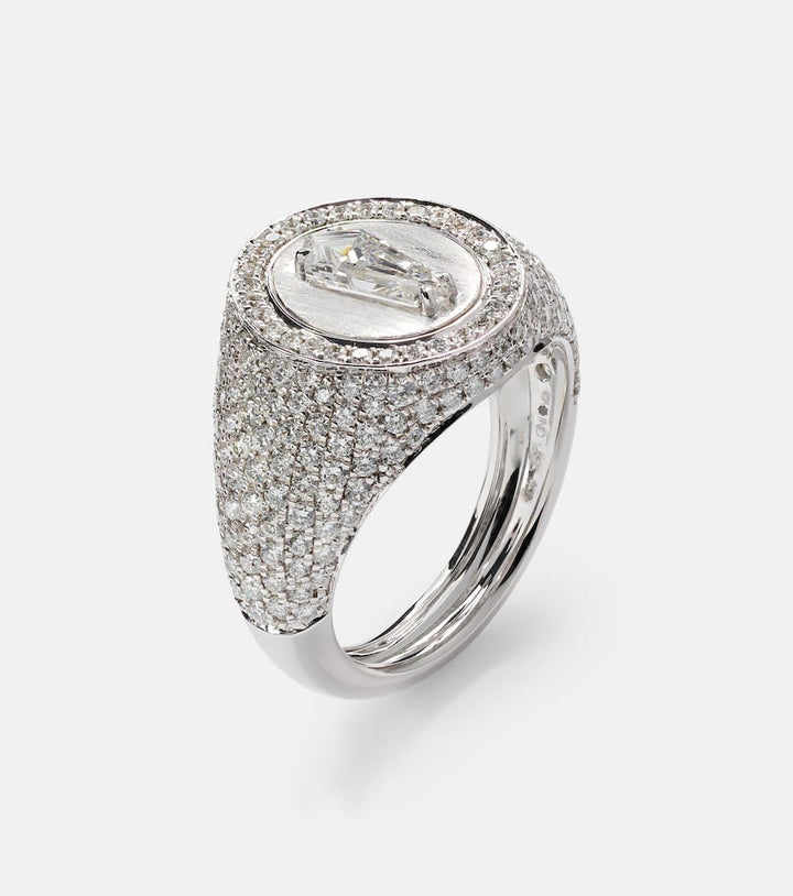 Handcrafted in 18kt white gold with diamonds totaling 5.04ctw, prong and pavé settings. Maximum width 13mm (0.5'). Available in US sizes 4 (I), 5 (K), 6 (L 1/2).