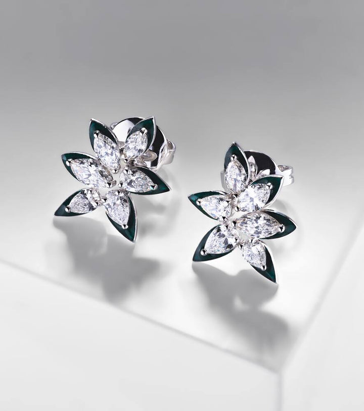 These 18kt White Gold Earrings by Kamyen exude refined elegance with a sculptural form. Featuring 2.61ctw of marquise and pear-shaped diamonds in prong settings, the design combines fluidity and structure. Their elongated silhouette accentuates the neckline, offering a sophisticated statement for formal occasions or elevated daywear. Kamyen’s precision in arranging the diamonds ensures maximum brilliance and symmetry, reflecting the brand’s dedication to quality, artistry, and timeless design.