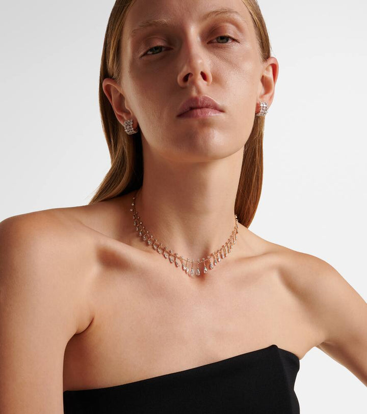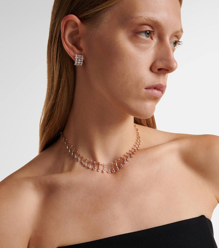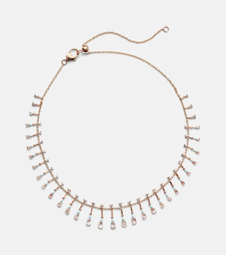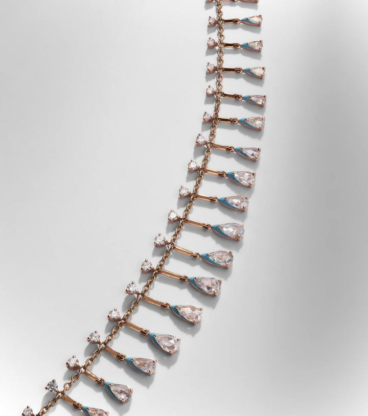 Handcrafted in 18kt rose gold with pear-shaped diamonds totaling 3.22ct, prong setting, enamel accents. Adjustable length; Width 1mm (0.05"); Max width 17mm (0.65"); Max length 41cm (16"). Lobster-clasp fastening.