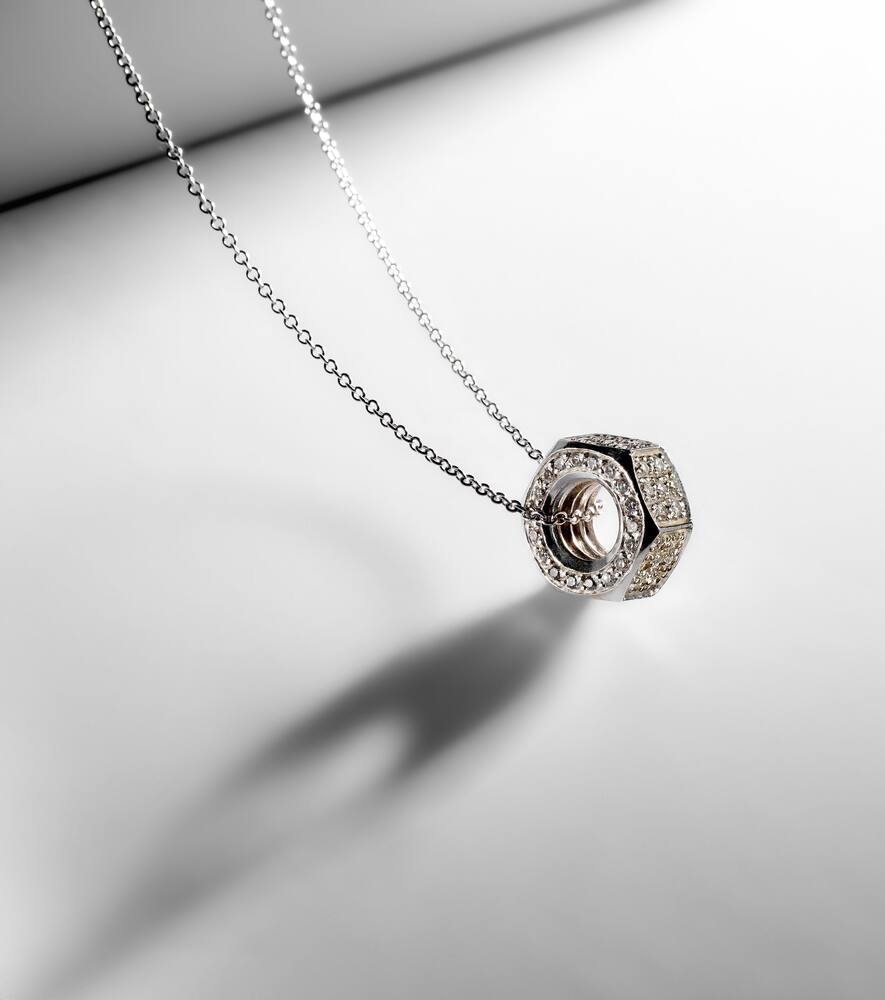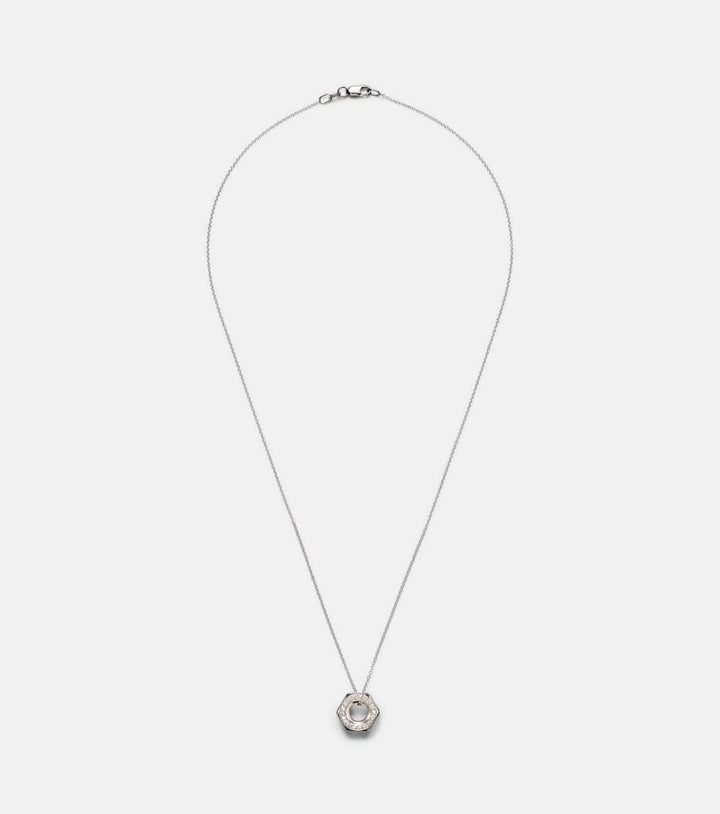 This Nut Pendant 18kt White Gold Necklace with Diamonds by Ileana Makri exudes refined luxury. Featuring 0.52ctw round-cut diamonds in pavé settings, the pendant sparkles subtly against the clean lines of white gold. The minimalist silhouette allows the diamonds to capture light brilliantly, creating a sophisticated focal point. Perfect for layering or standalone wear, the necklace reflects Ileana Makri’s signature balance of modern design and meticulous craftsmanship, combining understated elegance with a timeless sense of style that complements both casual and formal ensembles.