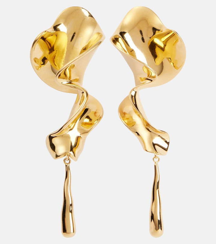 Gold-plated brass. Length 8cm (3"); Max width 2.8cm (1"); Post-back fastening. Made in Italy.