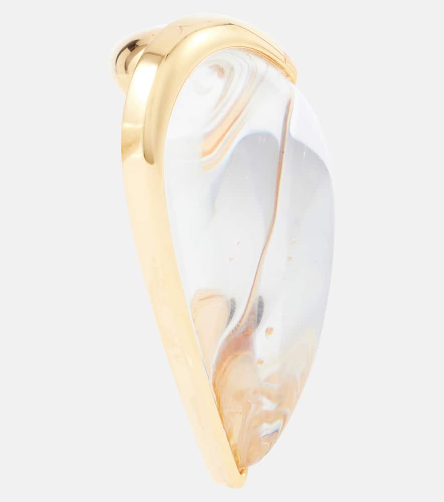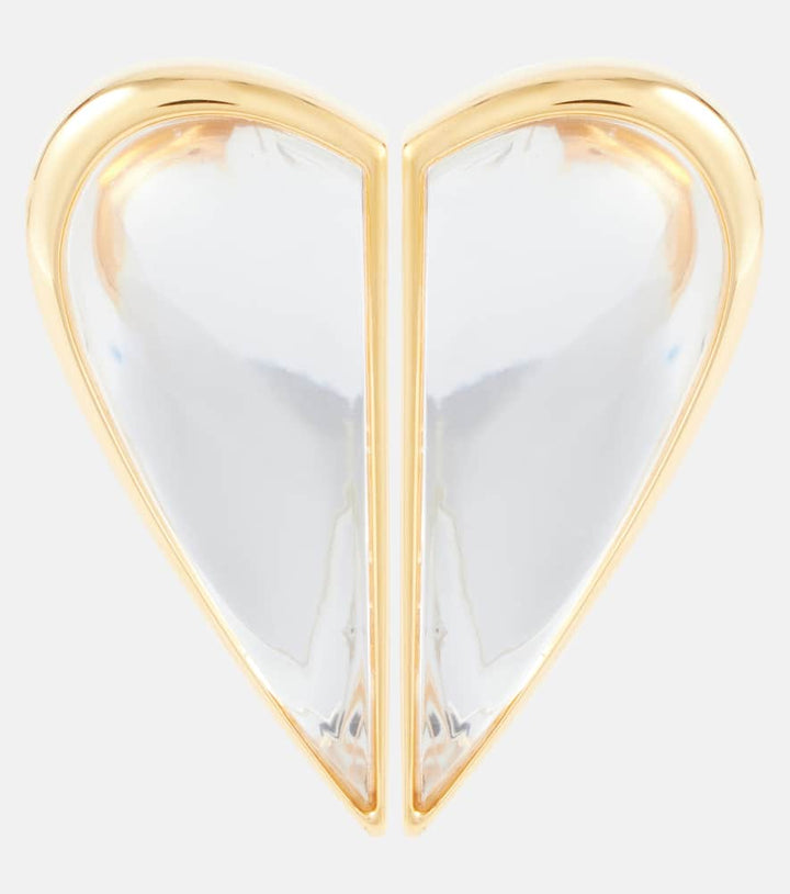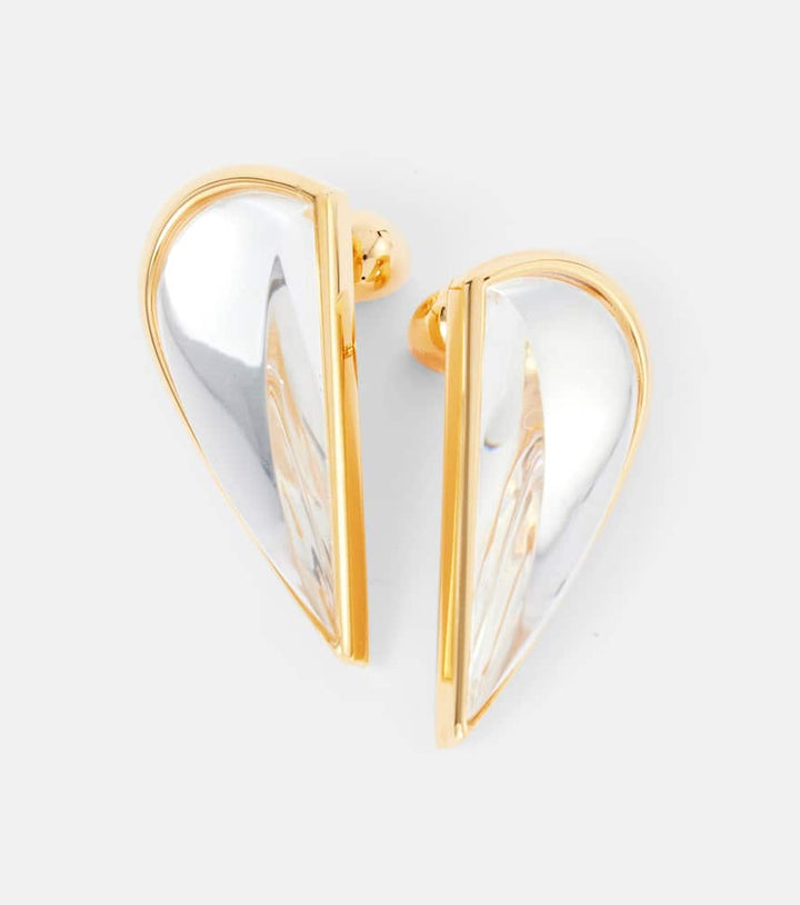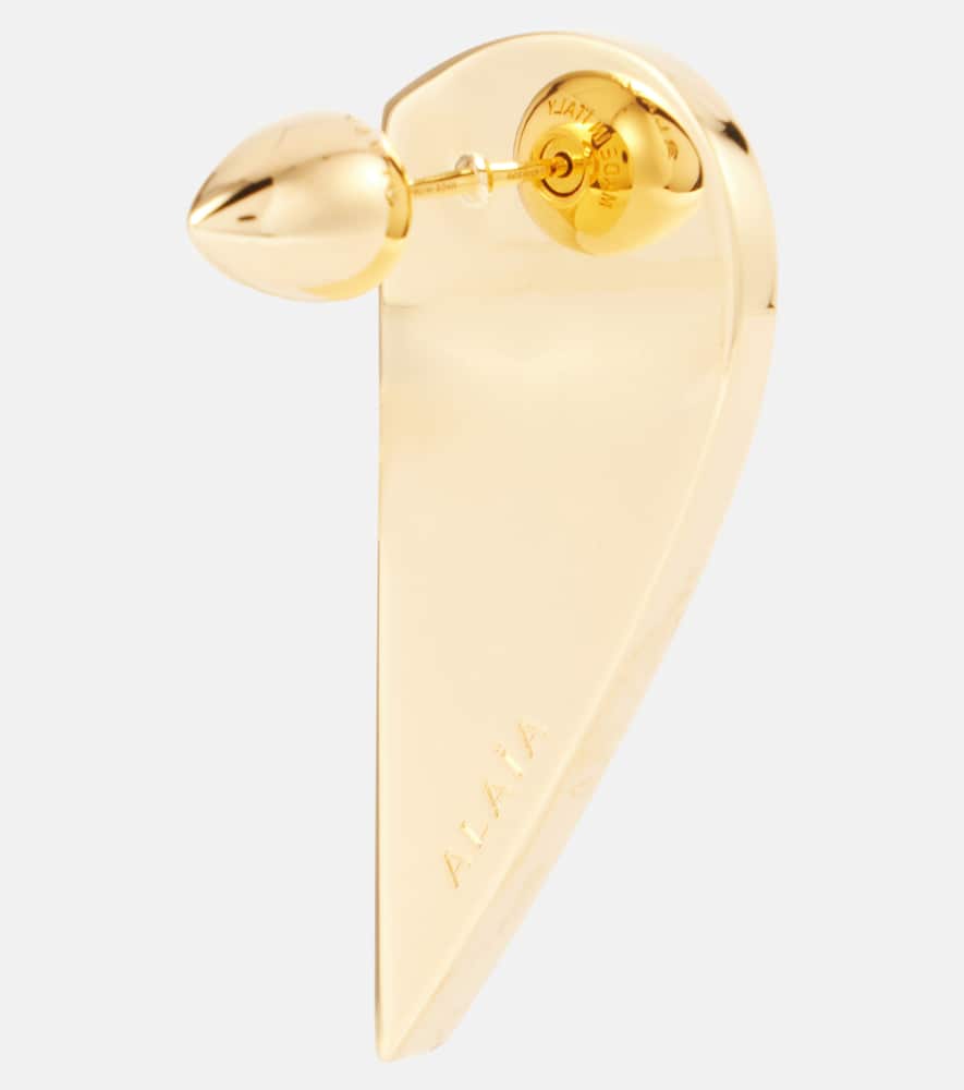 These Demi-Cœur Bombe Earrings by Alaia exude playful sophistication with sculpted curves in polished brass. The elegant silhouette is complemented by subtle color variations, making them versatile for day-to-night styling. Designed and made in Italy, these earrings reflect the brand’s dedication to modern forms and high-quality craftsmanship. Perfect for adding a contemporary accent to any outfit, they capture the essence of understated glamour while maintaining wearable comfort.
