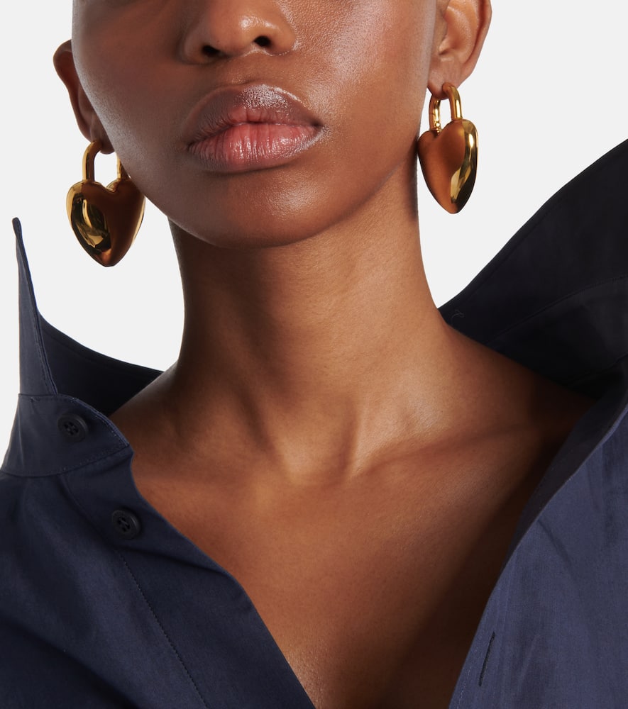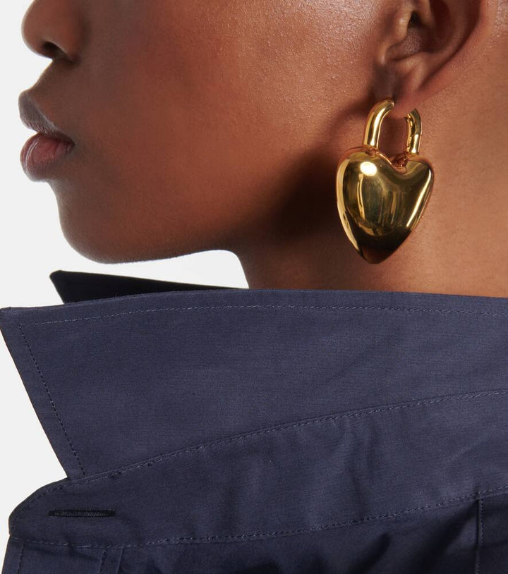 These Balenciaga Minnie XL heart earrings are a bold and playful statement piece. The oversized, polished brass hearts are designed to be noticed, exuding a modern and edgy glamour. The striking silhouette and sleek finish make them the perfect accessory for adding a touch of Balenciaga’s signature avant-garde style to any outfit. They are a must-have for those who appreciate bold accessories and want to make a powerful, fashion-forward statement.