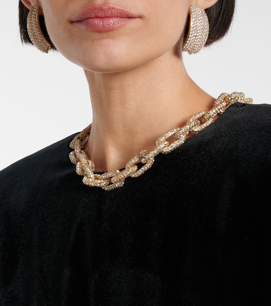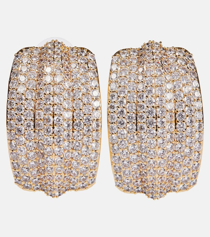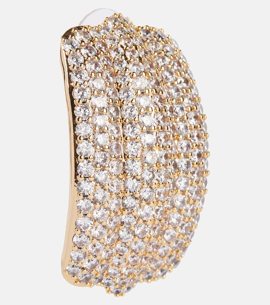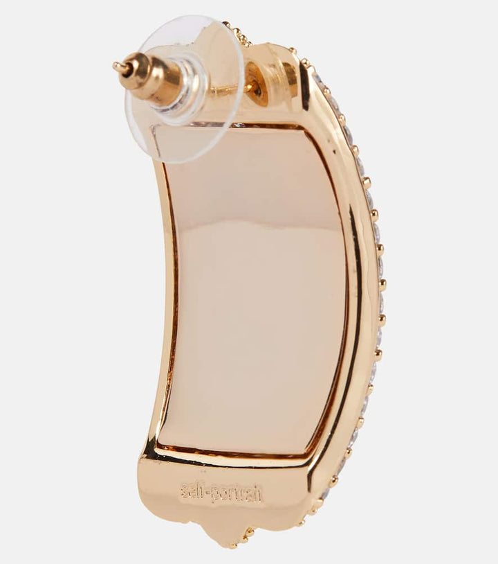 These Self-Portrait Crystal-embellished earrings are a glamorous and radiant accessory. Crafted in Italy from brass, these earrings feature a stunning arrangement of shimmering crystals that beautifully catch the light. The intricate, floral-inspired design adds a touch of romantic elegance to the piece, making it a perfect statement for special occasions. With their secure pin fastening, they are a comfortable and stylish choice for adding a touch of sophisticated sparkle to your look.