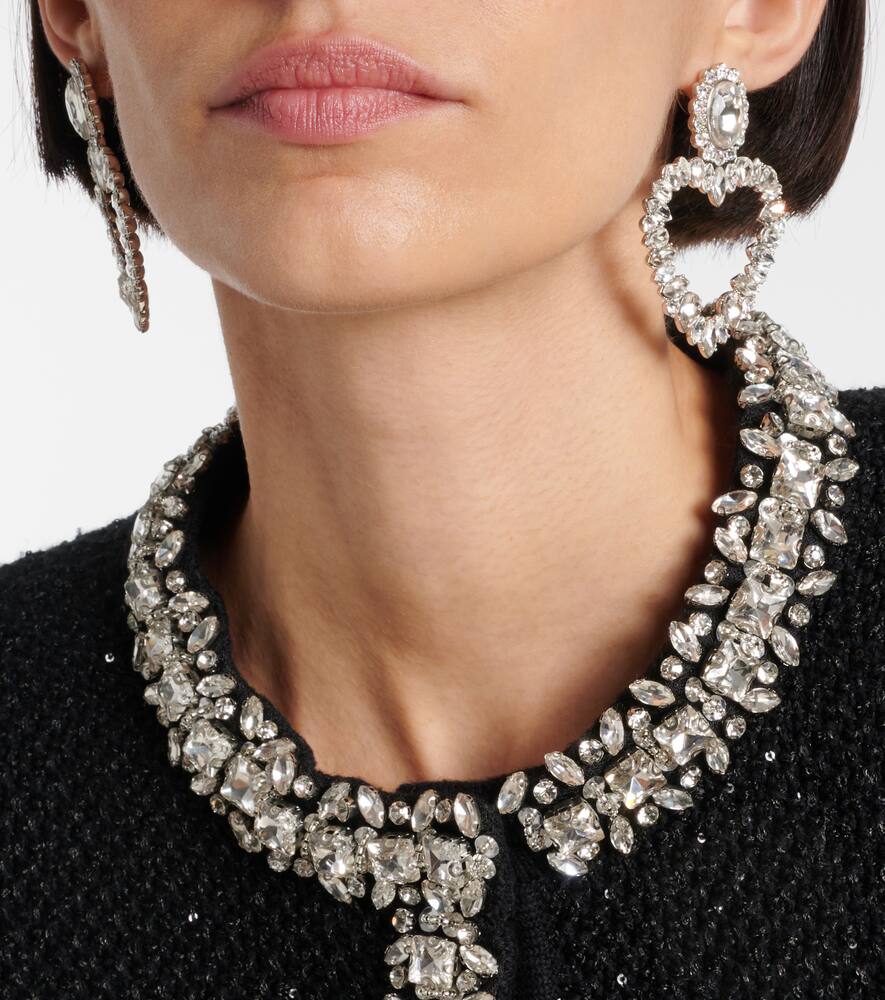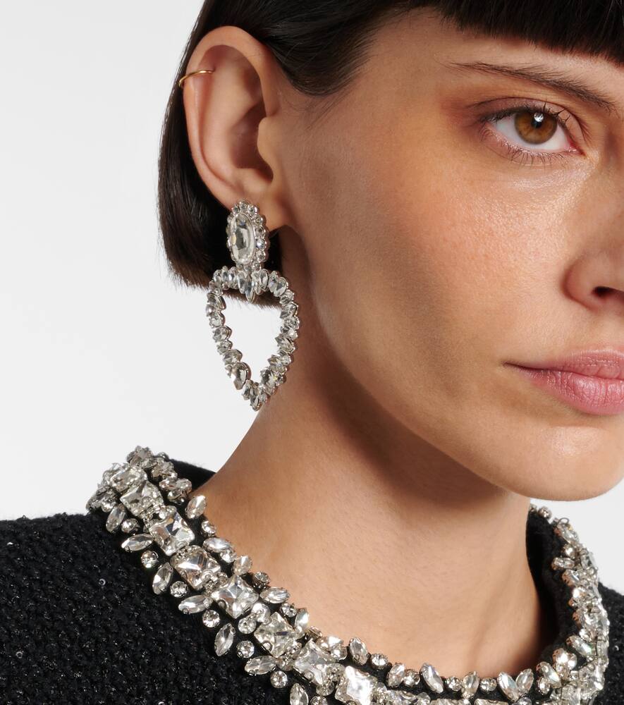 These Self-Portrait Crystal-embellished earrings are a dazzling and glamorous accessory. Crafted in China from brass plated with platinum, these earrings feature a striking floral-inspired design adorned with shimmering crystals. The intricate detail and sparkling finish make them a perfect statement piece for special occasions. The pin fastening ensures a comfortable and secure fit for pierced ears, allowing you to wear them with confidence and style.
