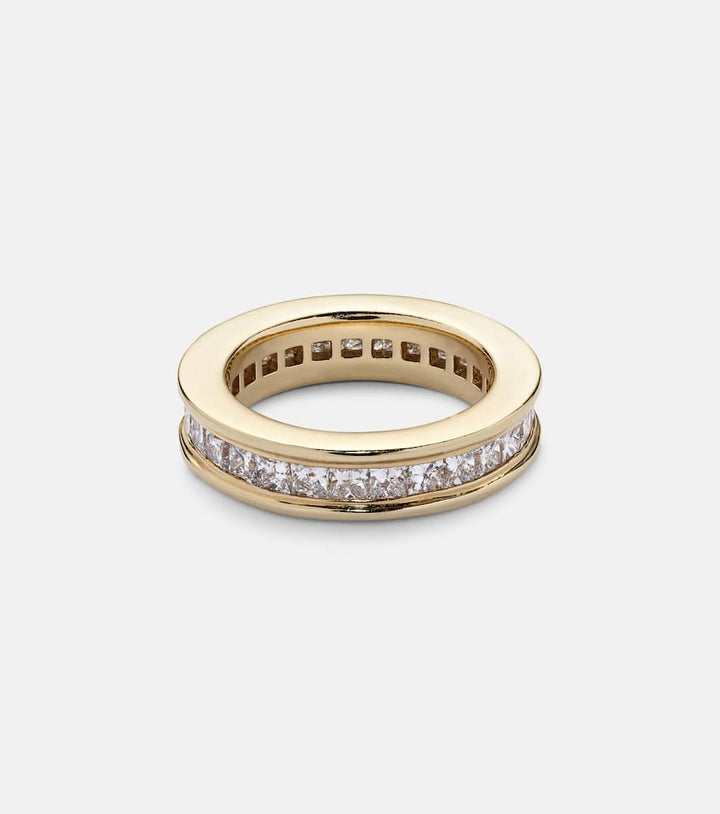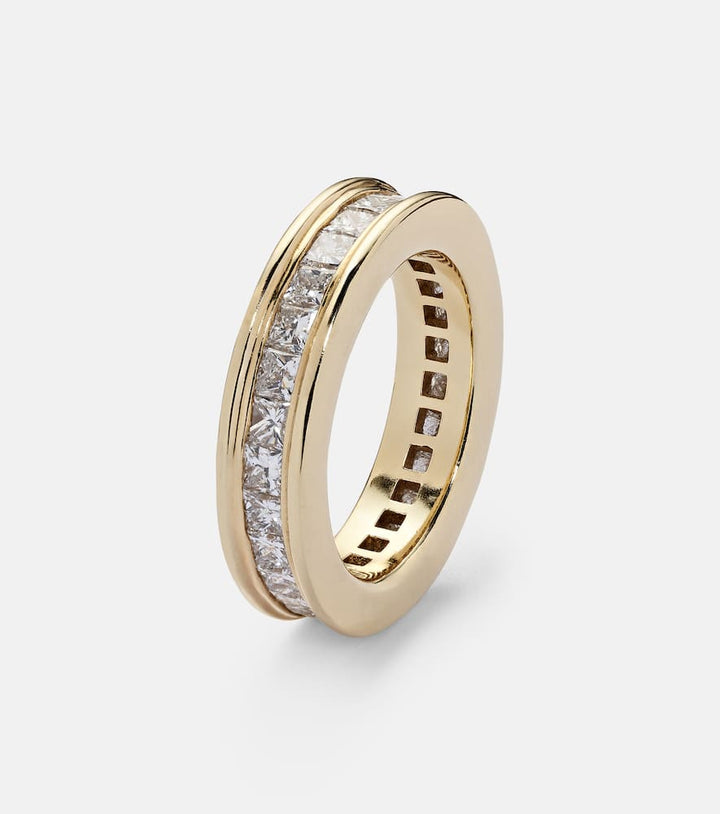 This Octavia Elizabeth Ivy Eternity 18kt gold ring with diamonds is a timeless and elegant piece that embodies refined luxury. Crafted in the USA from 18kt yellow gold, this eternity band is beautifully adorned with a continuous row of square-cut diamonds, totaling 3.25ct. The brilliant diamonds are set in a secure channel setting, creating a rich and sophisticated look. This ring is a perfect statement of enduring beauty, ideal for wearing alone or stacking with other pieces.