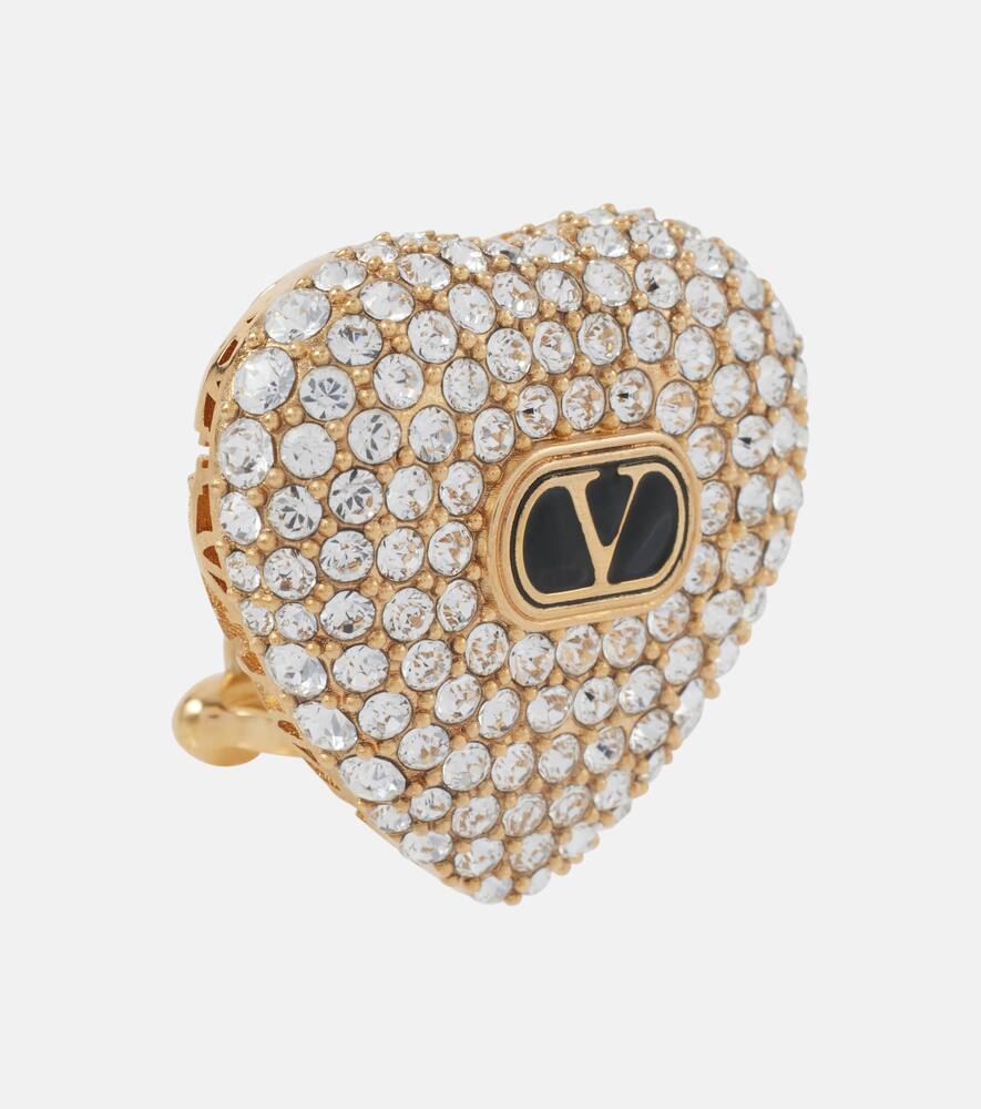 These Valentino Cuore XS embellished stud earrings are a delicate and charming accessory. Crafted in Italy from gold-plated bronze, these stud earrings feature a subtle heart shape that is beautifully adorned with shimmering glass stones. The secure clip-on fastening ensures a comfortable fit for those with or without pierced ears. These earrings are a perfect way to add a touch of heartfelt romance and subtle sparkle to any look, from a casual daytime outfit to a special occasion.