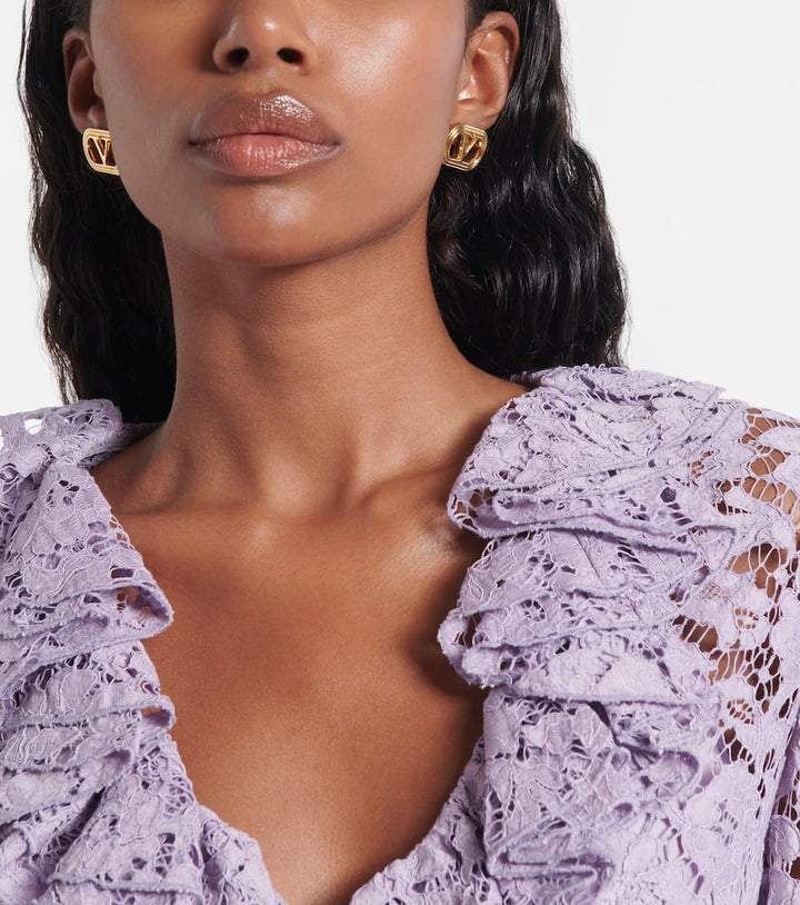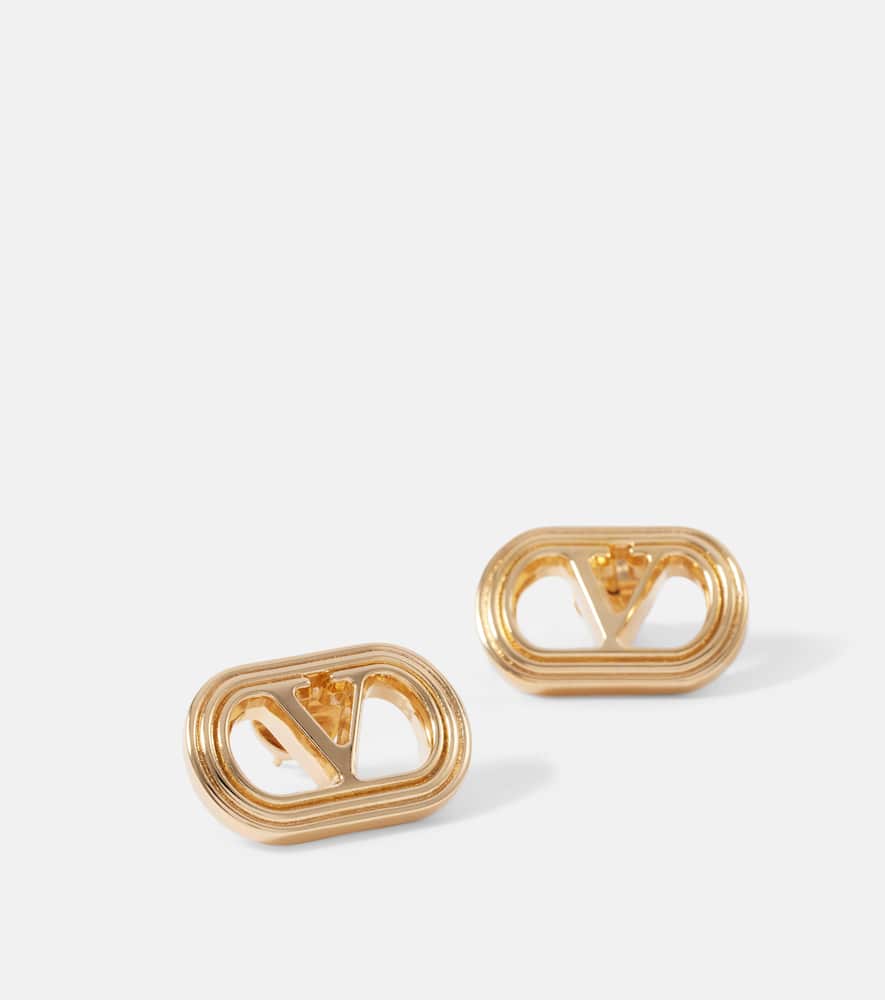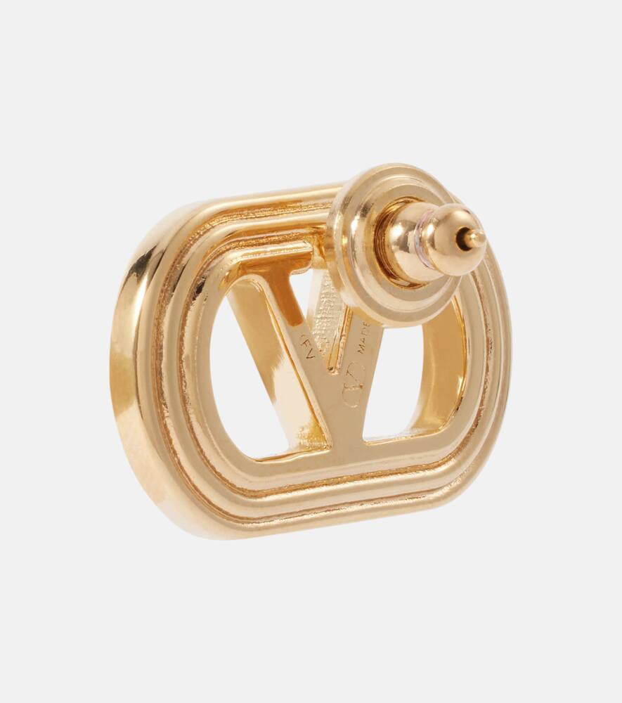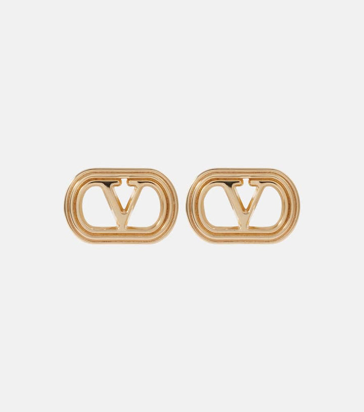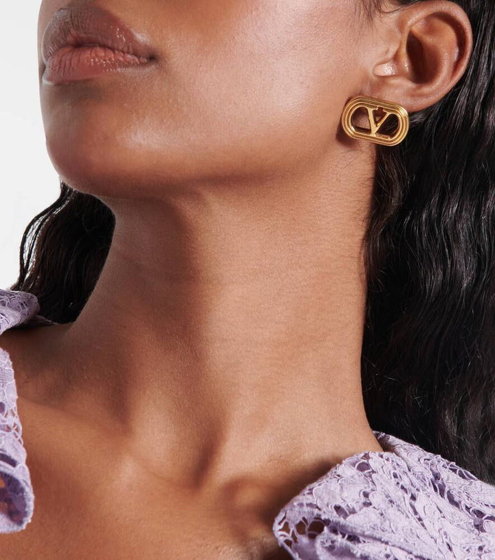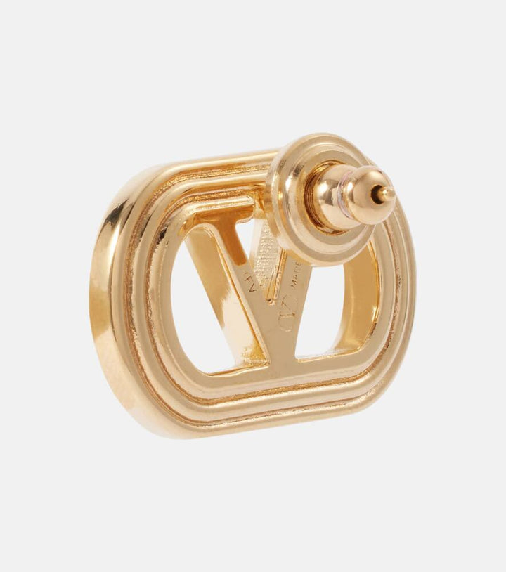 These Valentino Ovalette VLogo stud earrings are a sleek and modern accessory. Crafted in Italy from polished brass, these stud earrings feature a unique ovalette shape that is elegantly adorned with the iconic "VLogo" emblem. The radiant gold finish gives them a luxurious feel, and the pin fastening ensures a secure and comfortable fit for pierced ears. These earrings are perfect for adding a touch of sophisticated brand recognition and subtle style to your everyday look.