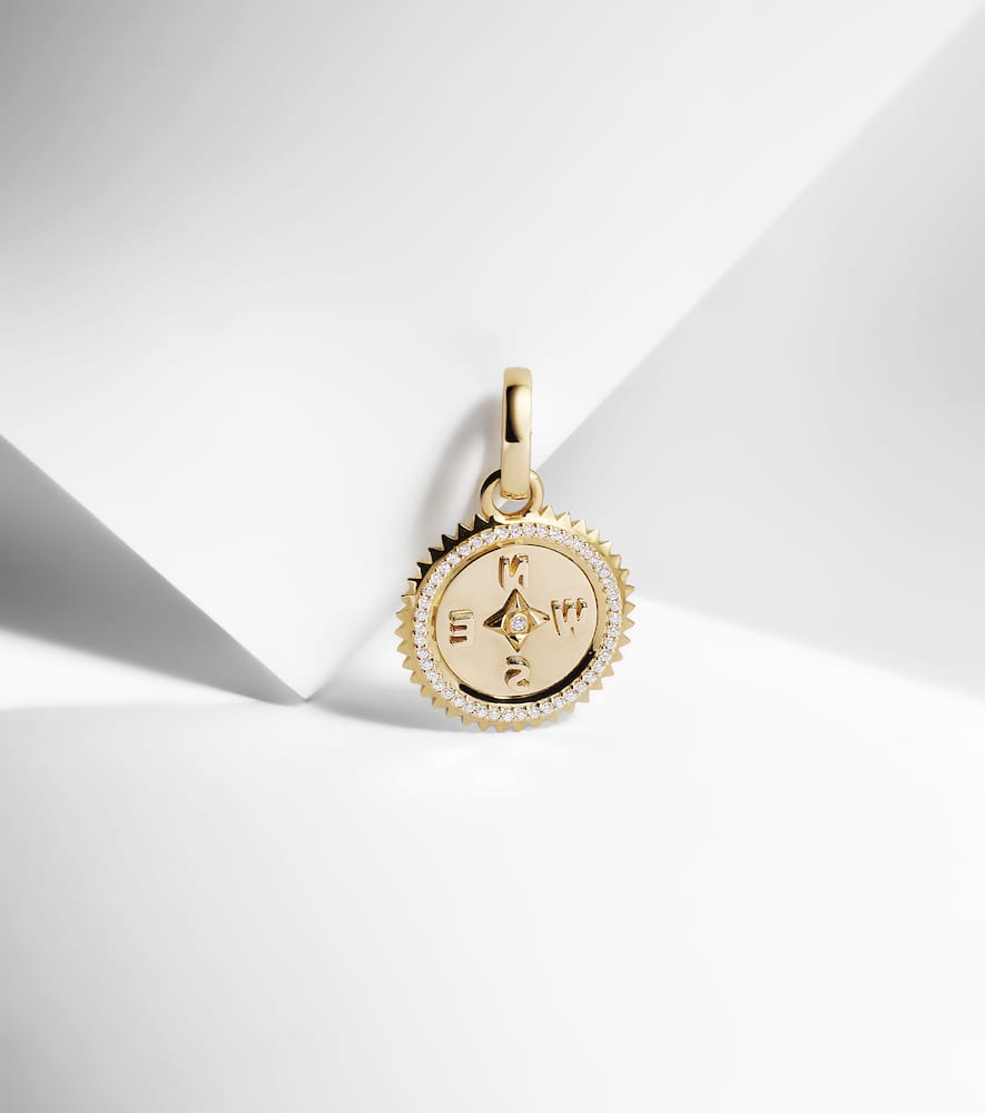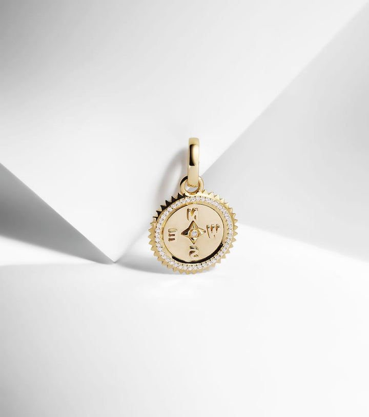 This FoundRae Internal Compass 18kt gold pendant with diamonds is a meaningful and elegant piece. Crafted in the USA from 18kt yellow gold, this pendant features a beautifully detailed internal compass design that symbolizes guidance and personal direction. The pendant is adorned with a sparkling diamond, adding a touch of luxury and brilliance. This necklace is a perfect daily reminder of your path and a sophisticated way to express your inner strength.