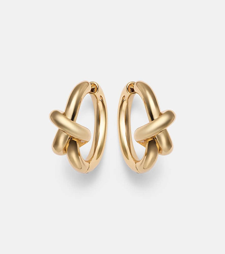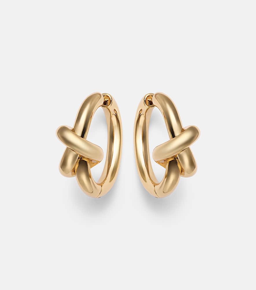 These Jennifer Fisher 10kt gold hoop earrings are a modern and sculptural take on a classic silhouette. Crafted in China from 10kt yellow gold-plated brass, these earrings feature a unique, fluid shape that adds a sense of movement and visual interest. The radiant gold finish gives them a luxurious and refined feel. The solid 14kt gold pin fastening ensures a comfortable and secure fit. These earrings are a perfect statement piece for adding a touch of sophisticated style.
