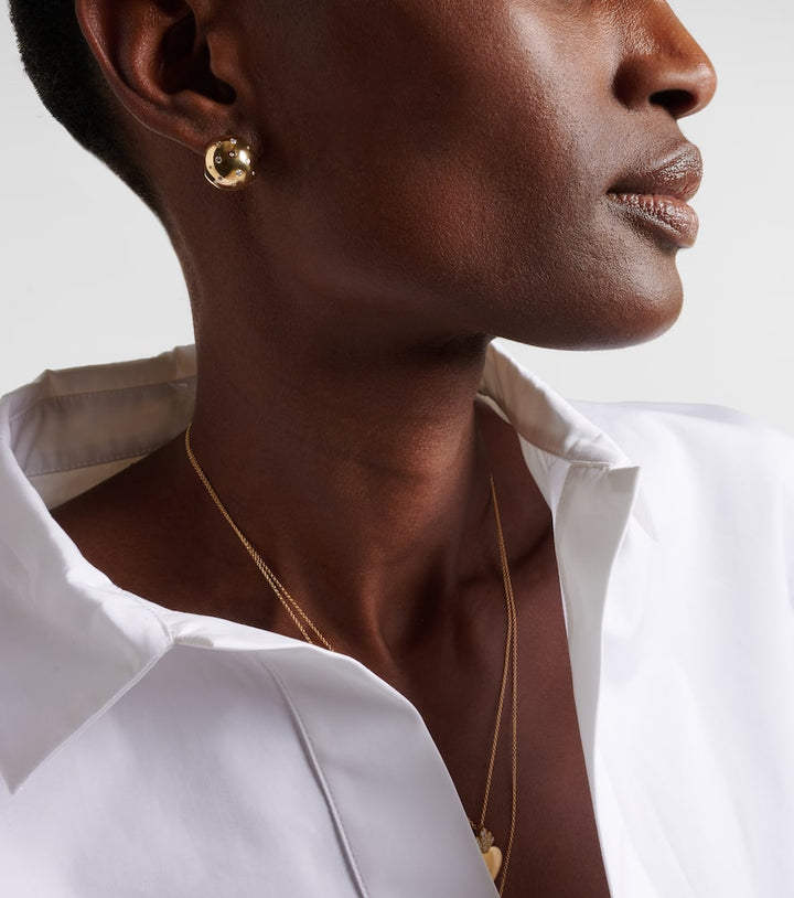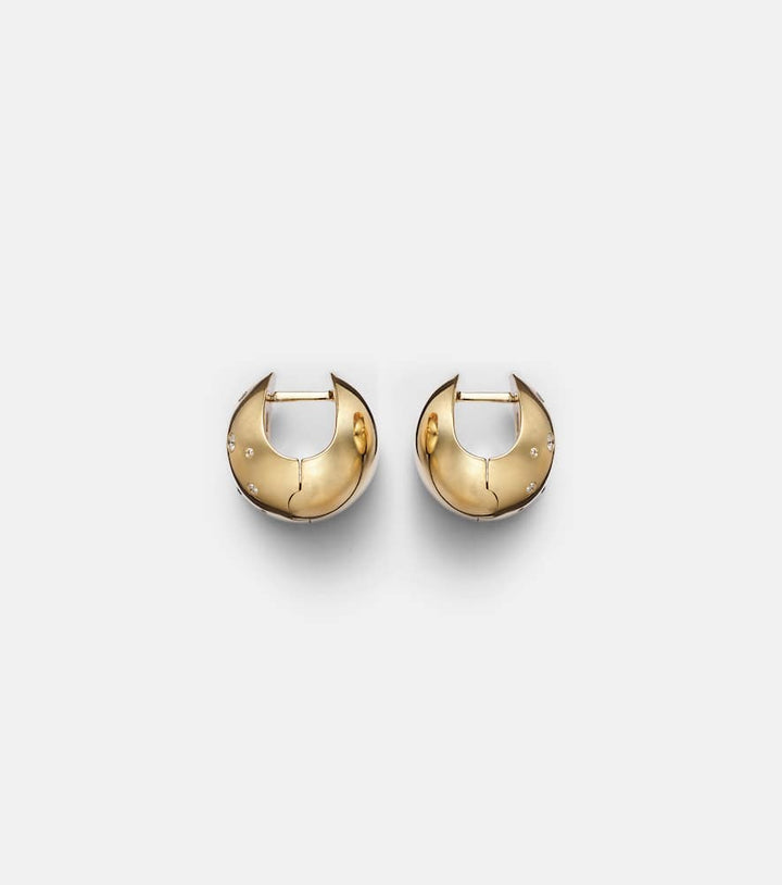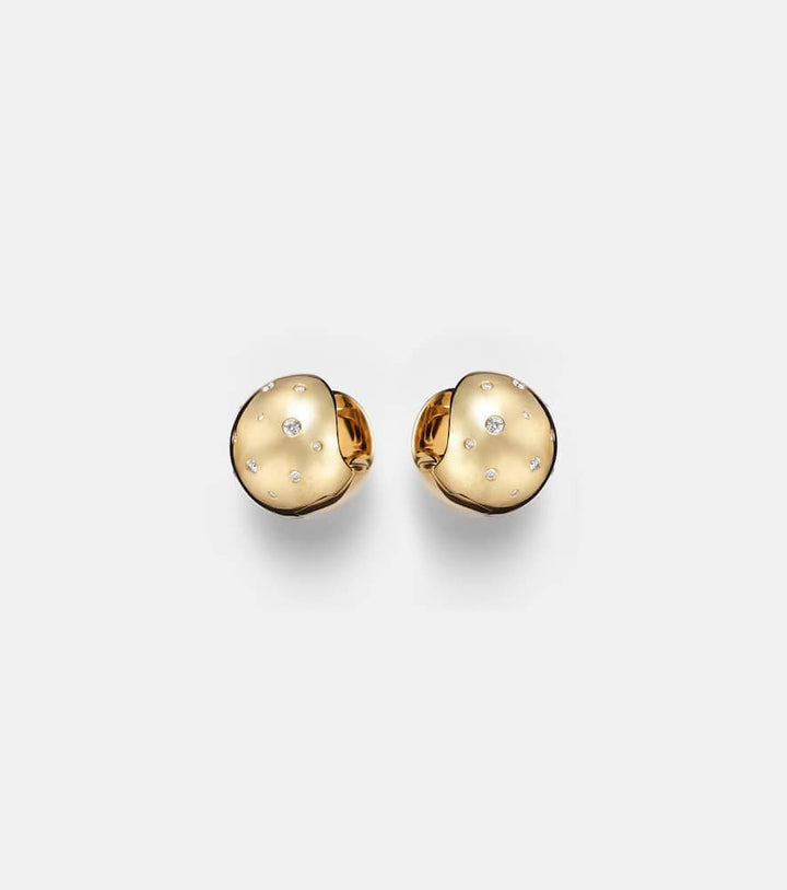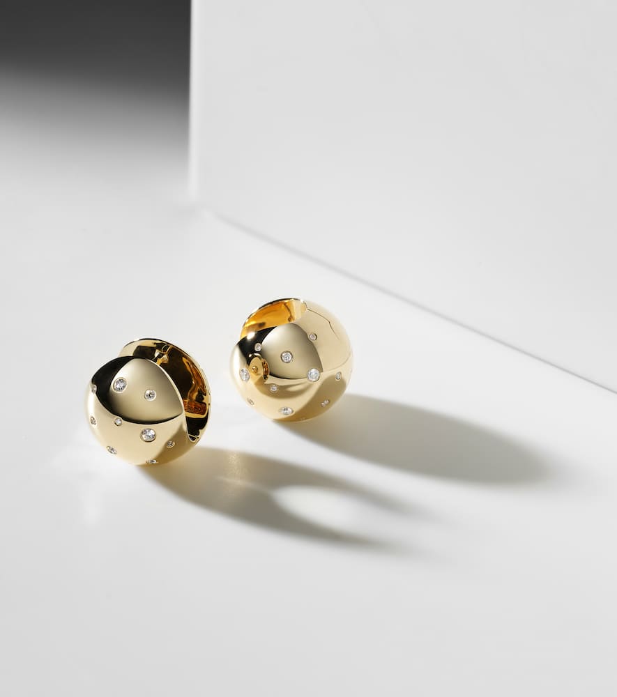 These Ileana Makri Glow Galaxy 18kt gold earrings with diamonds are a stunning and cosmic-inspired accessory. Crafted in Greece from 18kt yellow gold, these earrings feature a unique "Glow Galaxy" motif that is beautifully adorned with a pavé of sparkling diamonds (0.18ct). The intricate detailing and brilliant shine create a sense of celestial elegance. These earrings are a perfect statement piece for adding a touch of sophisticated, otherworldly glamour to any look.