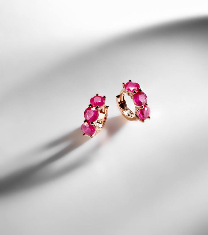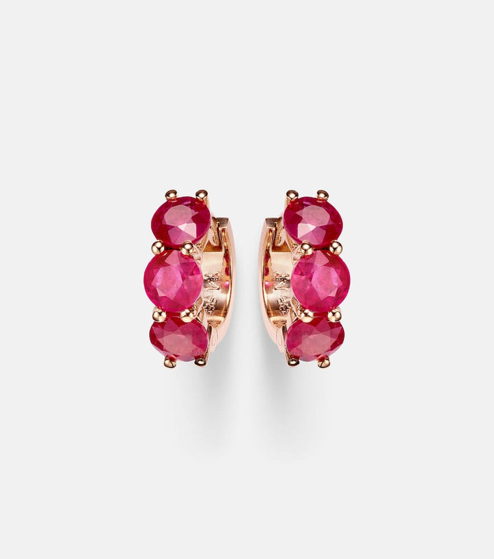 18kt rose gold hoop earrings with rubies