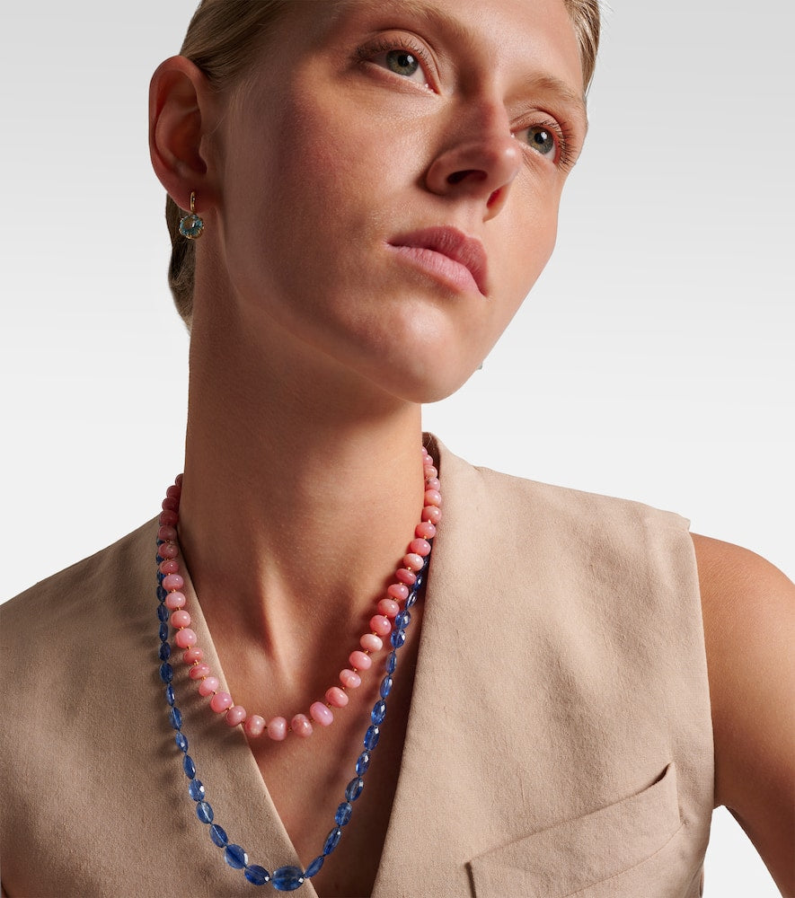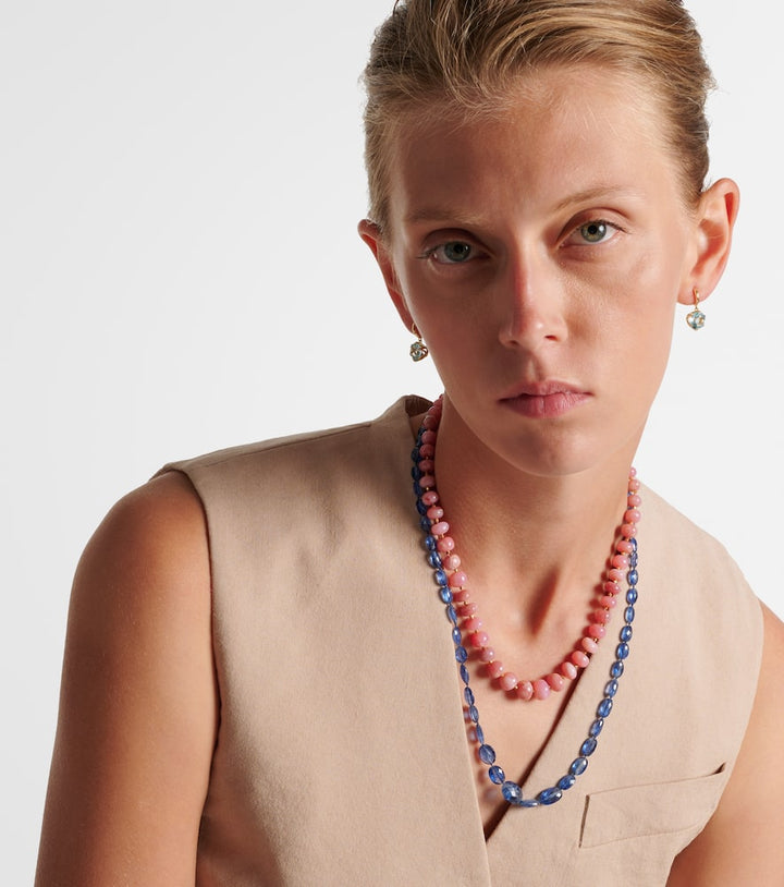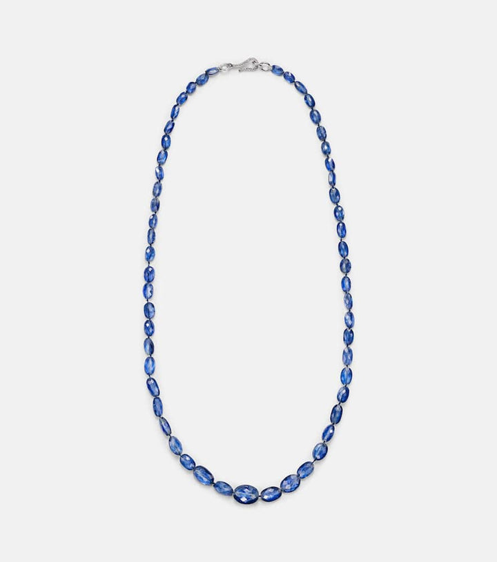 This Ileana Makri 18kt white gold beaded necklace with kyanite and diamonds is a stunning blend of natural beauty and luxurious design. The necklace is crafted in Greece from 18kt white gold, featuring a unique beaded design with luminous blue kyanite and a clasp adorned with sparkling diamonds (0.18ct). The contrast between the organic kyanite and the brilliant diamonds creates a graceful and timeless piece, perfect for adding a touch of sophisticated glamour.