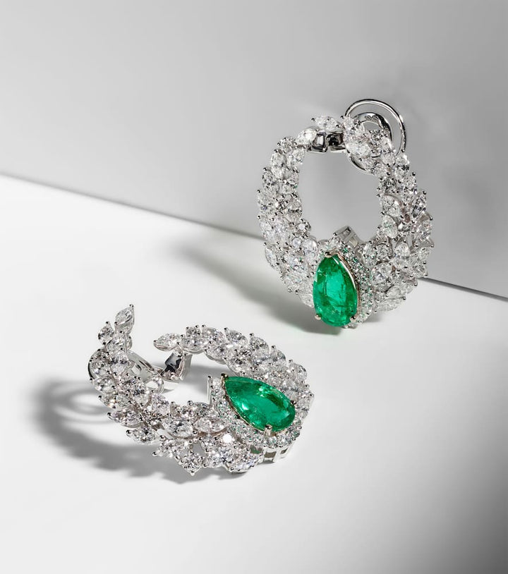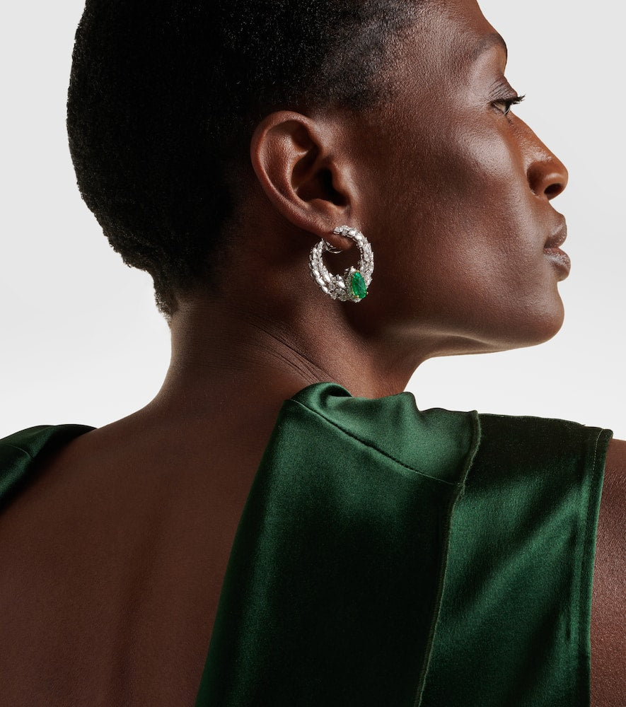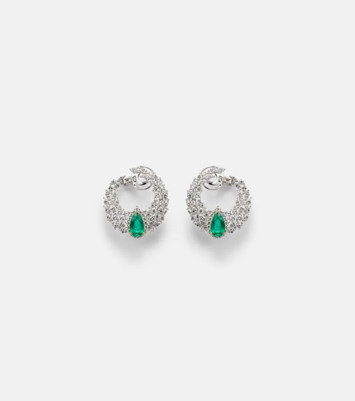 Reign Supreme 18kt white gold earrings with diamonds and emeralds