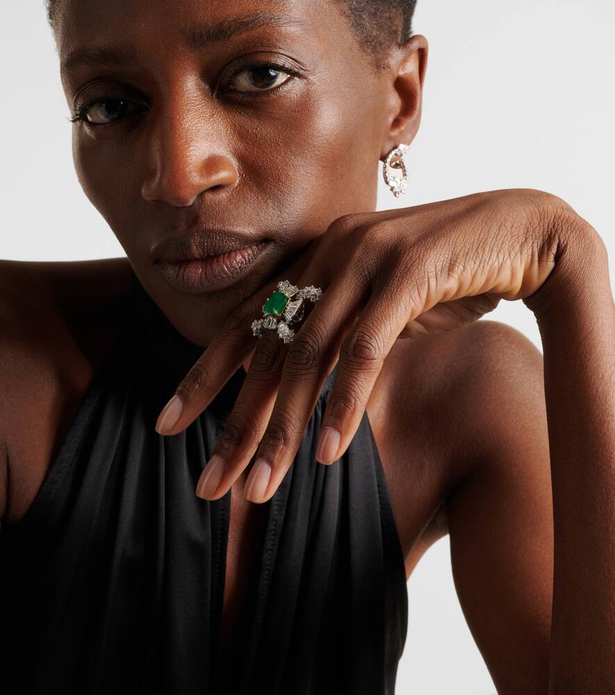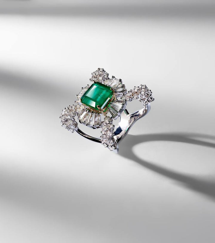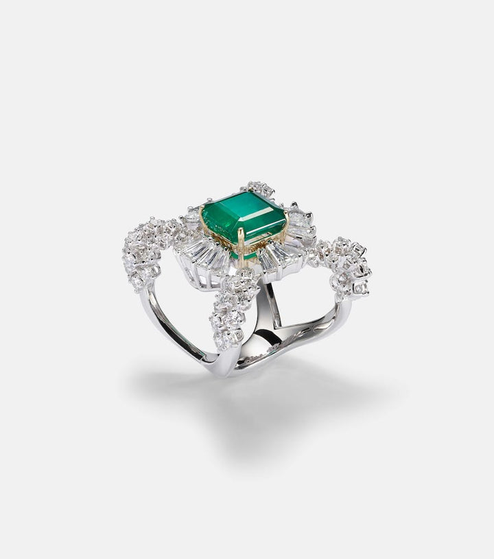 Reign Supreme 18kt white gold ring with emerald and diamonds