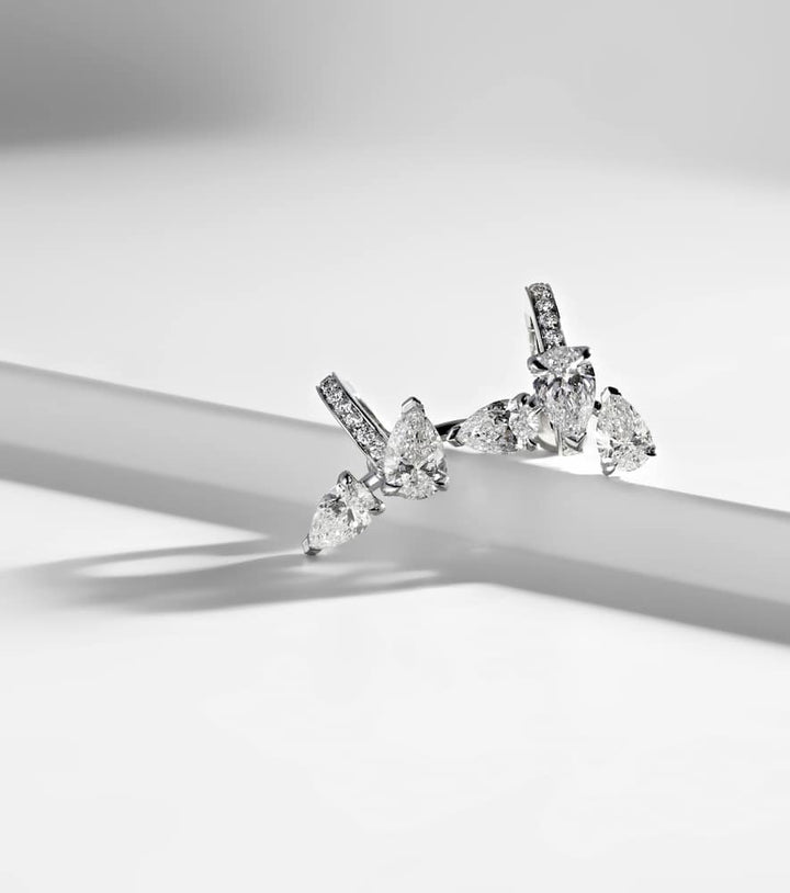 This Repossi Serti Sur Vide 18kt white gold single ear cuff with diamonds is a modern and elegant accessory. Crafted in Italy from 18kt white gold, this single ear cuff features a unique design that is beautifully adorned with pavé-set diamonds and two striking pear-shaped diamonds (1.2ctw). The clean lines and brilliant sparkle create a sophisticated and modern aesthetic. This piece is perfect for adding a touch of edgy glamour and can be worn alone or stacked with other pieces.