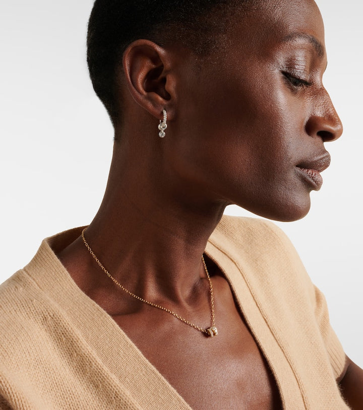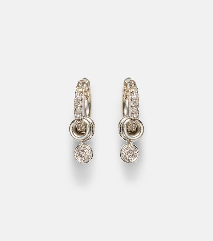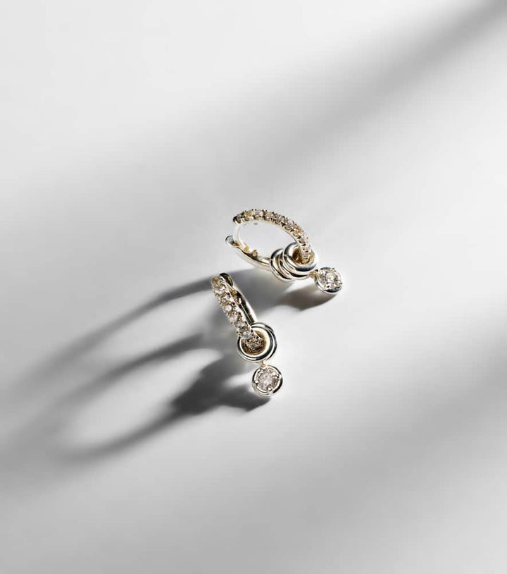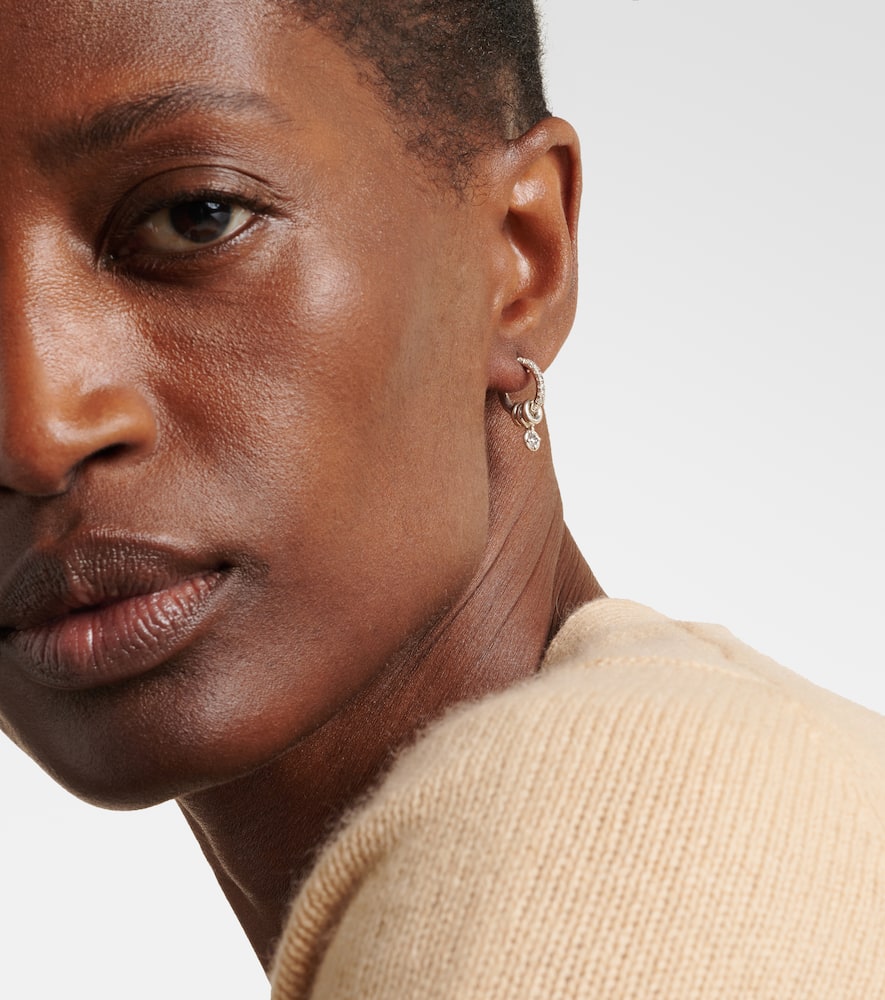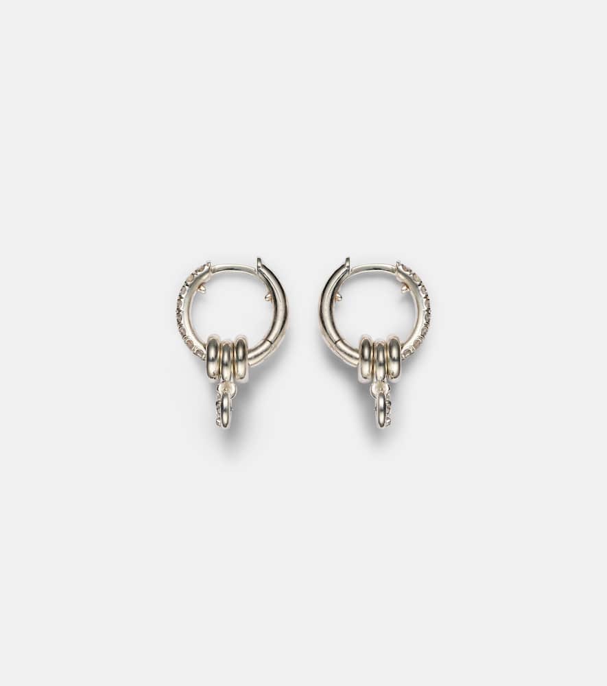 These Spinelli Kilcollin Zahra sterling silver earrings with diamonds are a modern and architectural masterpiece. Crafted in the USA from 925 sterling silver, these earrings feature a unique design of a small hoop with a dangling pendant. The pendant is beautifully adorned with a pavé of sparkling diamonds (0.39ct), creating a stunning contrast between the clean silver and the brilliant sparkle. These earrings are a perfect statement of sophisticated and contemporary style.