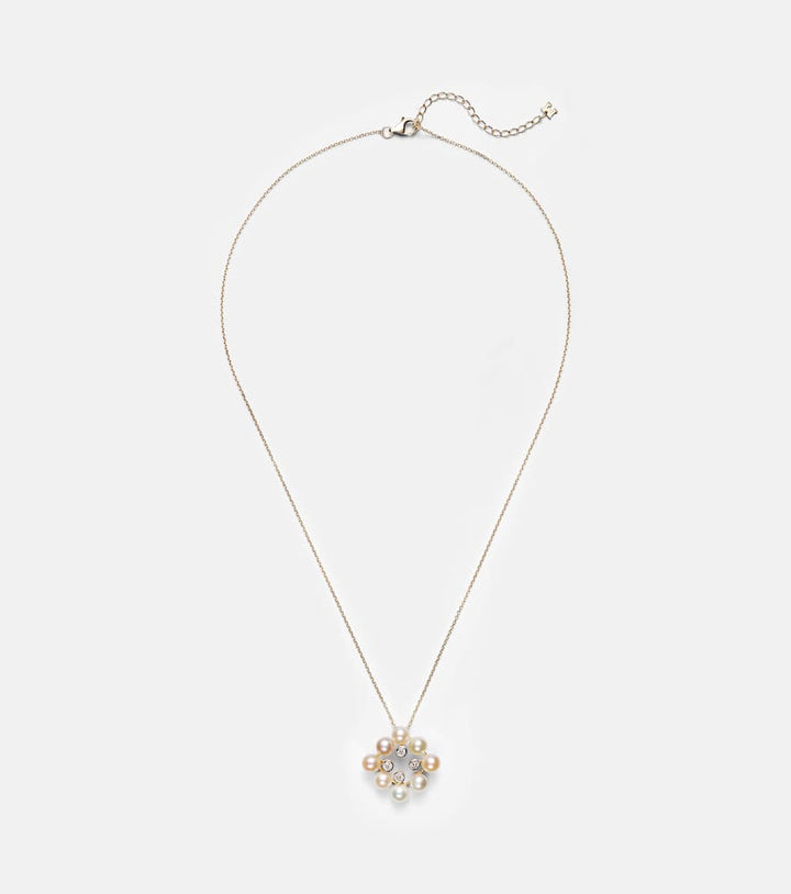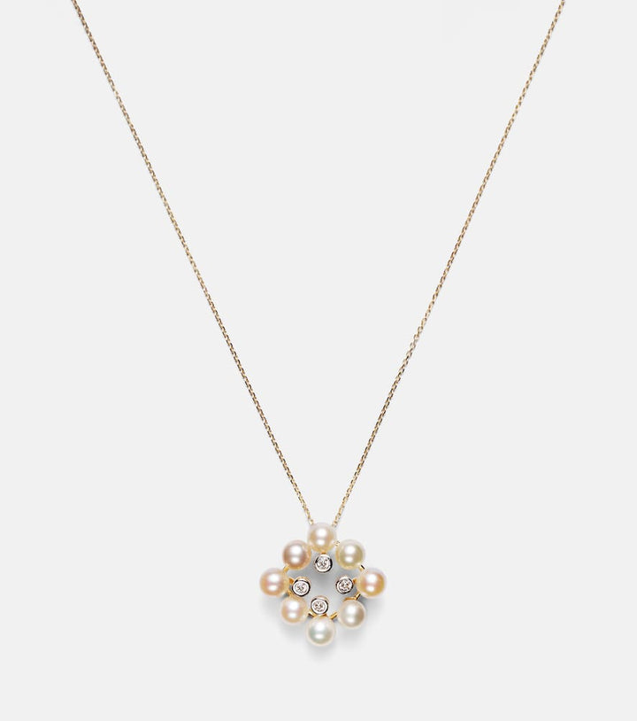 Cluster 14kt gold pendant necklace with pearls and diamonds