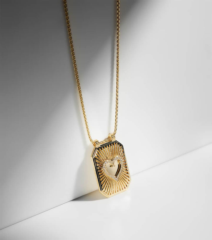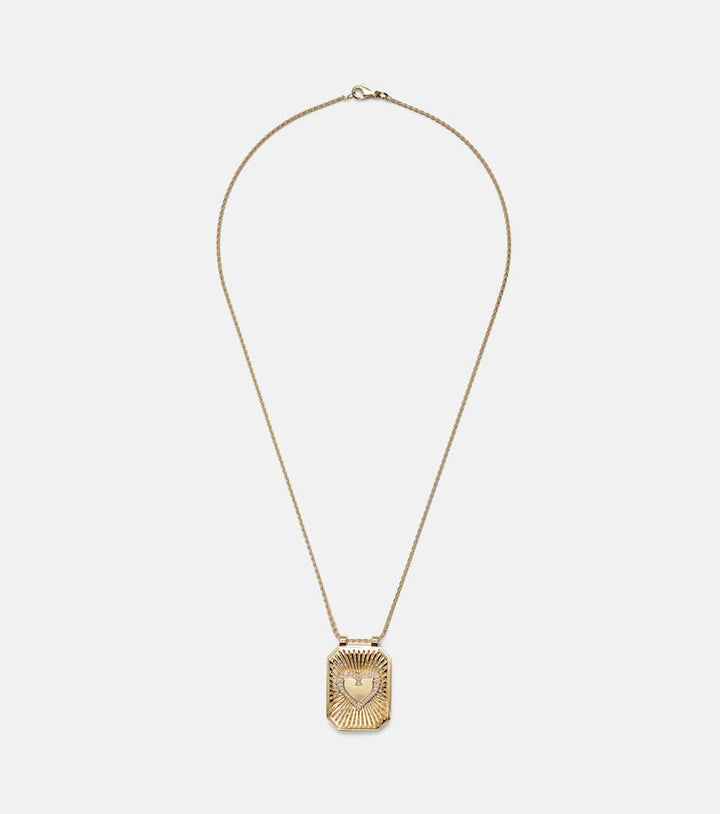 This Heart 18kt gold pendant necklace by Marie Lichtenberg is a romantic and sophisticated piece. The necklace features a beautifully detailed heart pendant, set in 18kt yellow gold and adorned with 31 dazzling diamonds. The classic heart shape, elevated by the brilliant sparkle of the diamonds, makes this piece a perfect symbol of love and affection. It is a luxurious and meaningful accessory, ideal for both everyday wear and special occasions, and perfect for a cherished loved one.