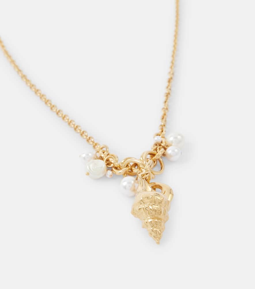 This Chloé Shells embellished pendant necklace by Chloé is a stunning and elegant piece inspired by the beauty of the ocean. The necklace features a long, delicate chain that holds a beautifully crafted pendant with a polished shell and a brilliant faux pearl. The design is both organic and luxurious, making it a perfect statement of bohemian glamour. This necklace is ideal for layering with other pieces or wearing on its own, symbolizing a love for natural beauty and a refined, free-spirited style.