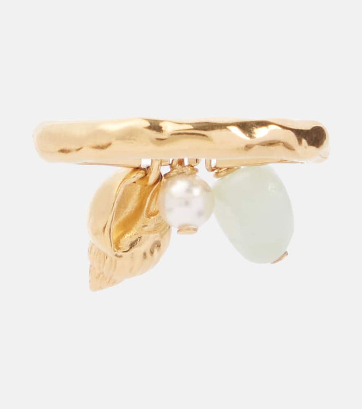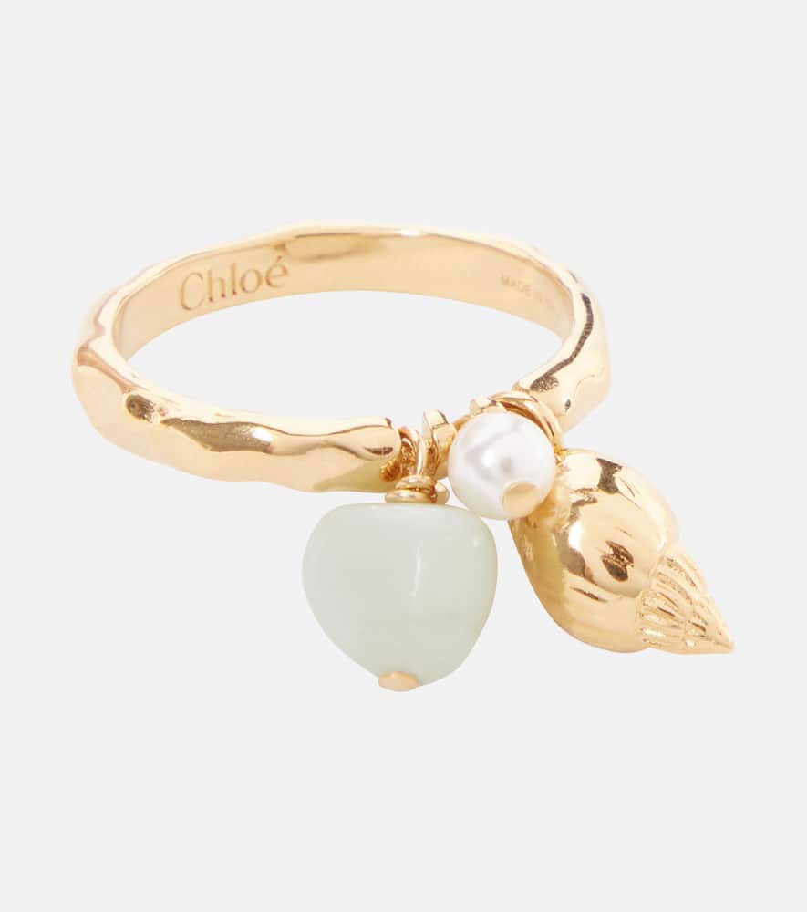 This Chloé Shells faux pearl ring by Chloé is a unique and artistic statement piece. The ring features a stunning faux pearl nestled within a beautifully sculpted brass design, creating a sense of organic movement and grace. The combination of the classic pearl with a modern, architectural shape makes for a ring that is both elegant and on-trend. This ring is a perfect accessory for adding a touch of sophisticated style and a hint of artistic flair to your look.