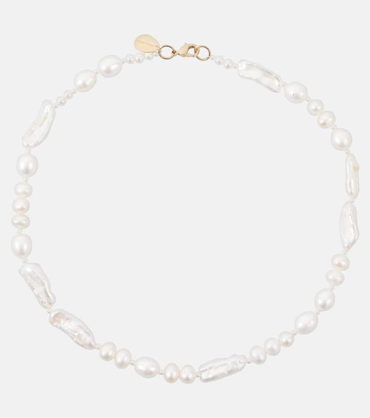This Legato pearls and faux pearl necklace by Simone Rocha is a delicate and sophisticated piece that brings together classic materials in a modern way. The necklace features a beautifully crafted design of freshwater pearls and faux pearls, creating a rich and layered texture. The organic shape of the pearls gives it a timeless elegance, while the clean lines add a touch of modern simplicity. This necklace is perfect for adding a subtle sparkle and a touch of refined charm to any look.