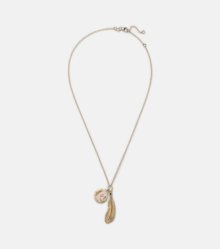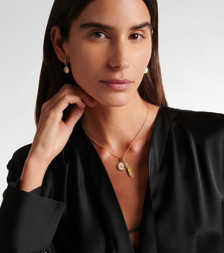 Handcrafted in 18kt yellow gold with diamonds totaling 0.0749ct. Adjustable chain length 41–46cm (16–18"); Width 1mm (0.05"); Pendant 44 × 18mm (1.75 × 0.7"). Lobster-clasp fastening. Made in the USA.