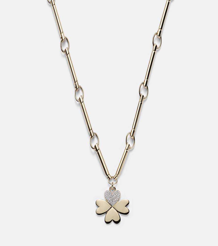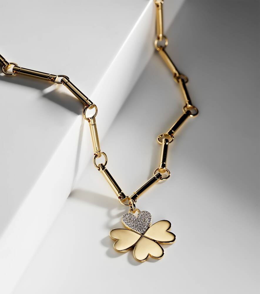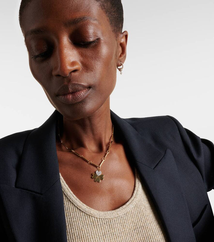 Handcrafted in 18kt yellow gold with 0.221ctw pavé-set diamonds, VS1 clarity. Chain length 42cm (16.5"); Pendant 24 × 20mm (0.95 × 0.8"); Lobster-clasp fastening. Made in the USA.
