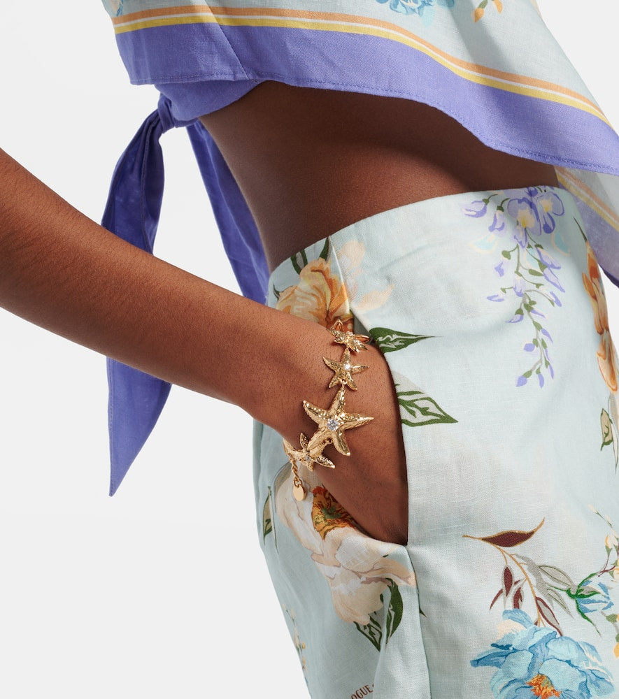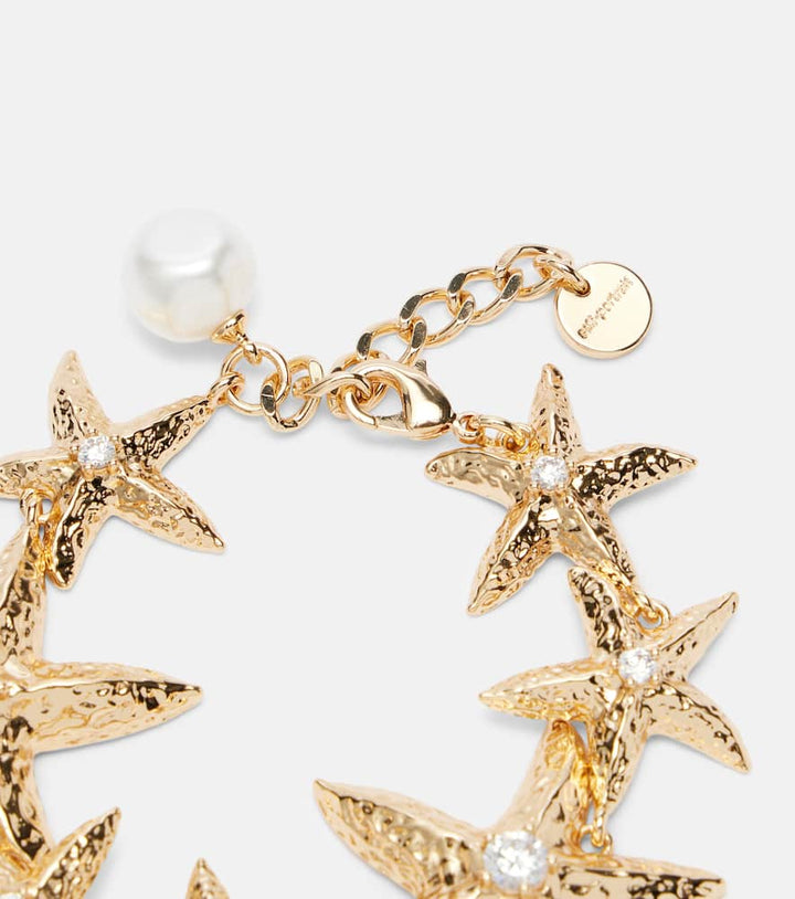 This Embellished Gold-Plated Bracelet by Self-Portrait is a sophisticated accessory that combines contemporary design with luxurious materials. Crafted in brass with plastic pearls and 18k platinum plating, the adjustable bracelet features a width of 3.2cm and lengths from 17–19.5cm, ensuring versatility. Ideal for layering or as a standalone statement, it reflects the brand’s commitment to high-quality craftsmanship, detailed artistry, and wearable elegance. The piece’s gleaming finish and refined embellishments add sparkle and sophistication, making it a polished addition to any modern jewelry collection.