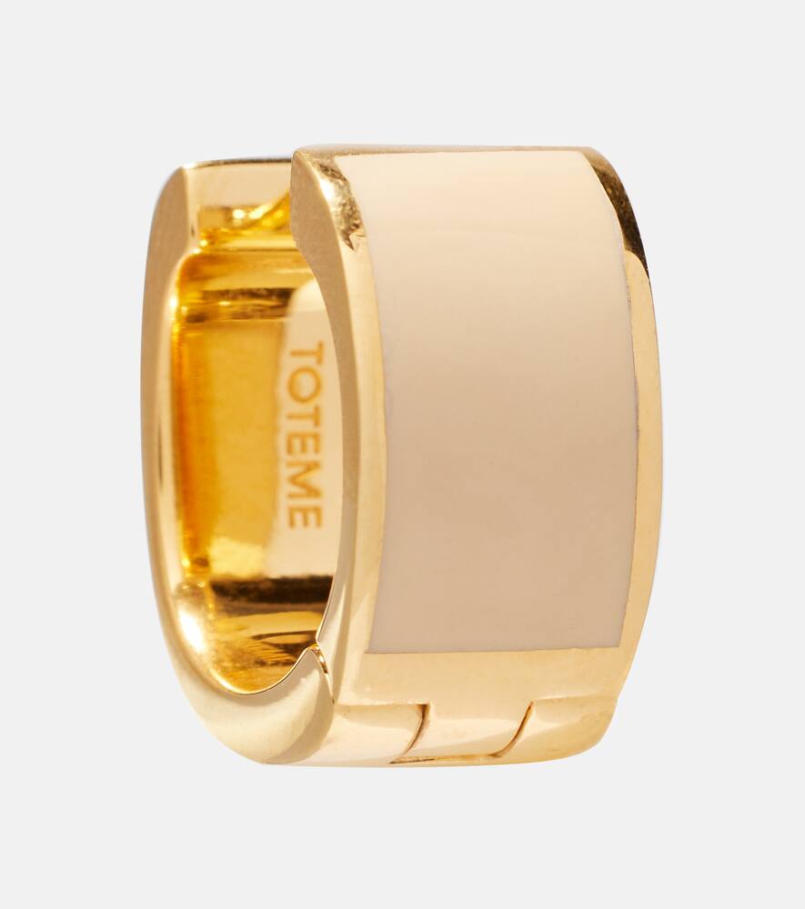 These Hoop Earrings by Toteme offer modern minimalism with a polished golden finish. Crafted in brass with an Ecru/Gold tone, the small-scale 0.7 × 0.8cm design provides subtle elegance, ideal for everyday wear or layering. Reflecting Toteme’s commitment to contemporary design and high-quality craftsmanship, these hoops are versatile, refined, and effortlessly chic.