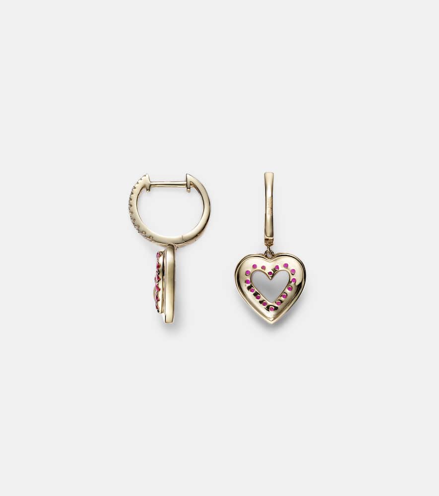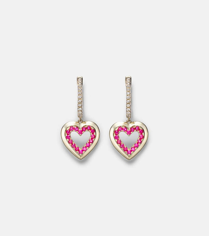 Handcrafted in 14kt yellow gold with 24 pavé-set diamonds (0.12ct) and 32 sapphires (0.41ct). Width 1mm (0.05"); Inner diameter 10mm (0.4"); Pendant 12 × 11mm (0.45"); Safety latch closure. Made in China.