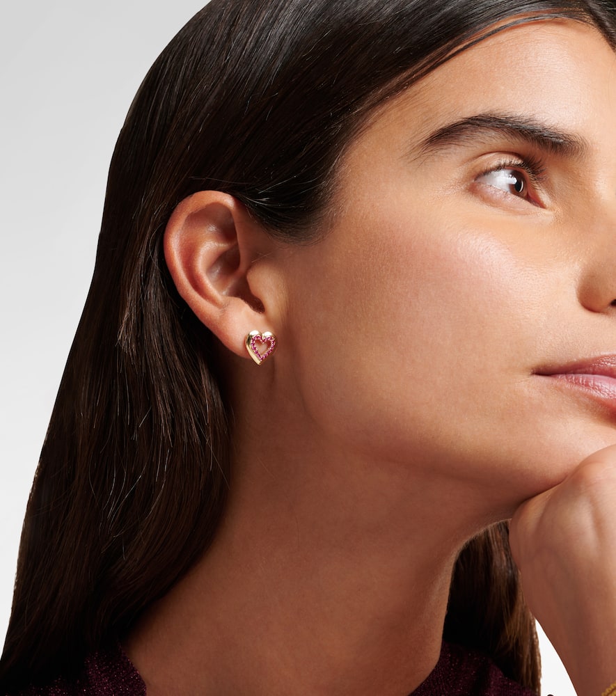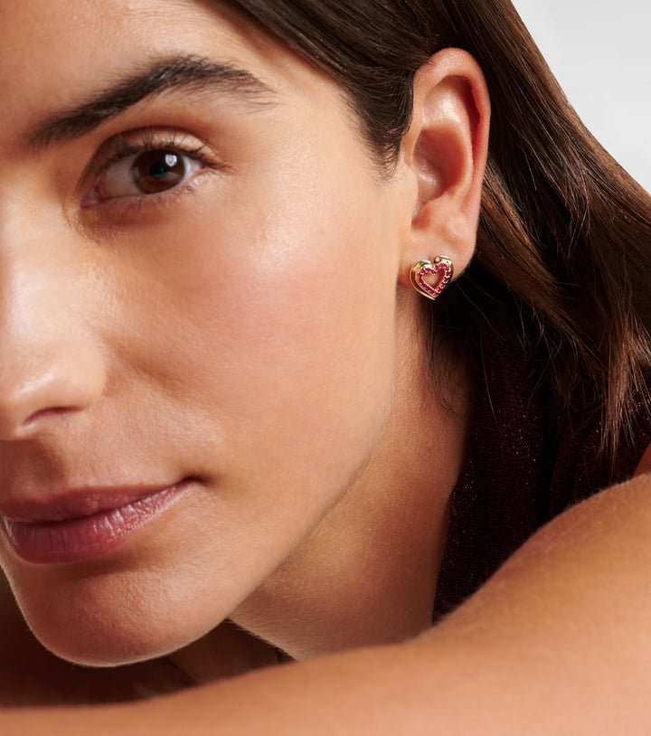 These 14kt gold earrings with sapphires by Roxanne First are a playful yet sophisticated accessory that embodies modern elegance. Crafted from beautiful 14kt yellow gold, these earrings feature a vibrant pop of color with 32 brilliant sapphires in a delicate prong setting. The whimsical design is perfectly sized for daily wear, making a subtle statement on their own or complementing a stacked ear look. These earrings are a testament to the brand's ability to blend joyful design with classic, high-quality materials, creating a piece that feels both luxurious and fun.