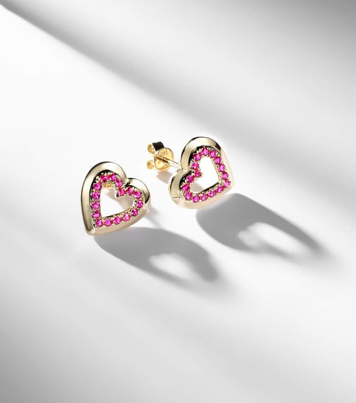 These earrings are made in China from 14kt yellow gold with 32 round-cut pink sapphires (0.42ct) in a prong setting. They feature a butterfly-back fastening and are for pierced ears. The length and max. width are both 11mm (0.45").