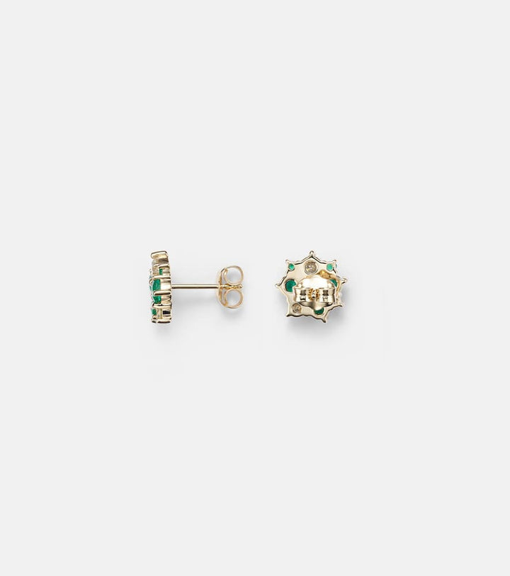 These earrings are made in Hong Kong from 14kt yellow gold with 10 round-cut emeralds and 8 round-cut diamonds (1.13ctw), all with a SI2 clarity grade and in a prong setting. The max. width is 9mm (0.35").