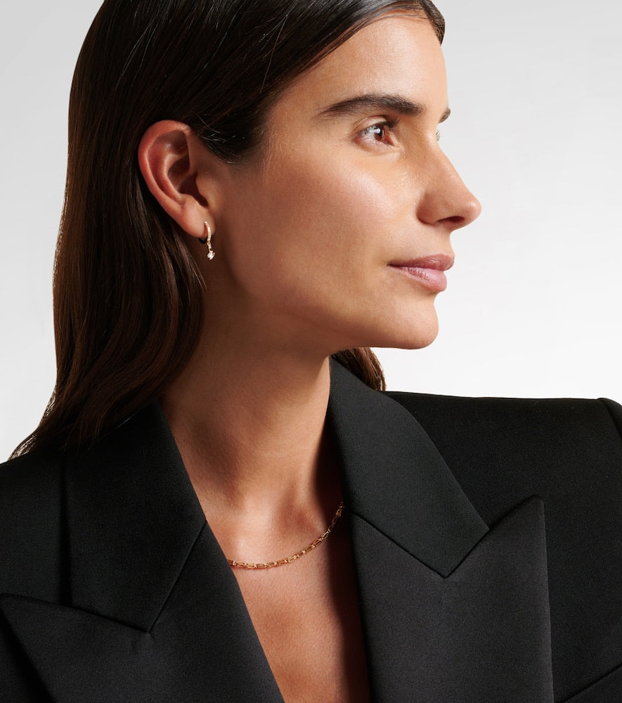 These 18kt gold drop earrings with diamonds by Suzanne Kalan are a modern and luxurious piece that embodies a sleek, contemporary aesthetic. Crafted from 18kt yellow gold, the earrings feature a series of interconnected blocks, each meticulously covered in a pavé of 24 brilliant diamonds. The pieces feel both edgy and refined, a true statement of sophisticated design and expert craftsmanship. They are a versatile accessory that can be worn for both everyday moments and special occasions, adding a touch of bold glamour to any ensemble.