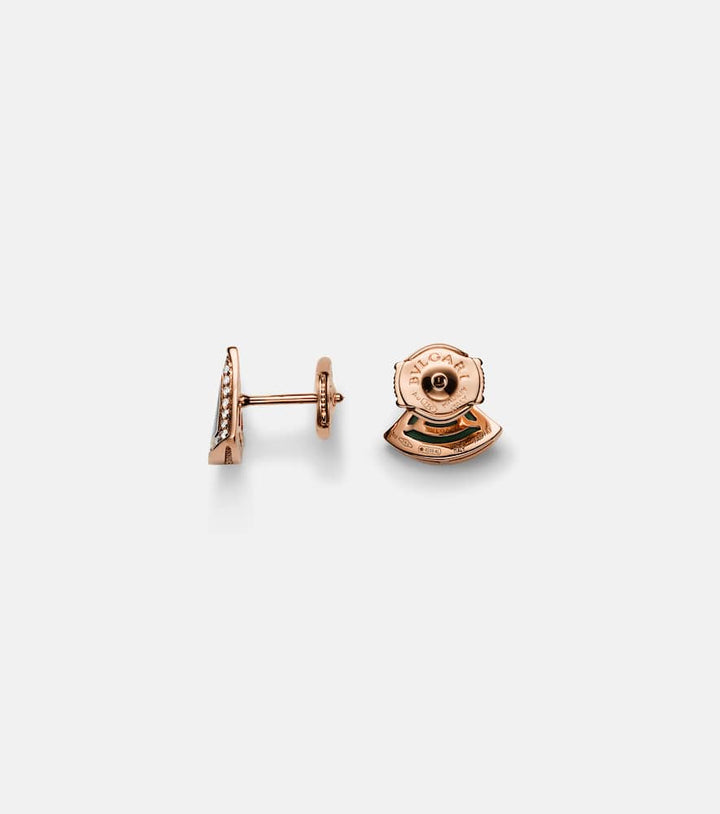These earrings are made in Italy from 18kt rose gold with two malachite inlays (0.23ct) and 48 diamonds (0.1ctw) in a pavé setting. They are for pierced ears and have a max. width of 10mm (0.4").