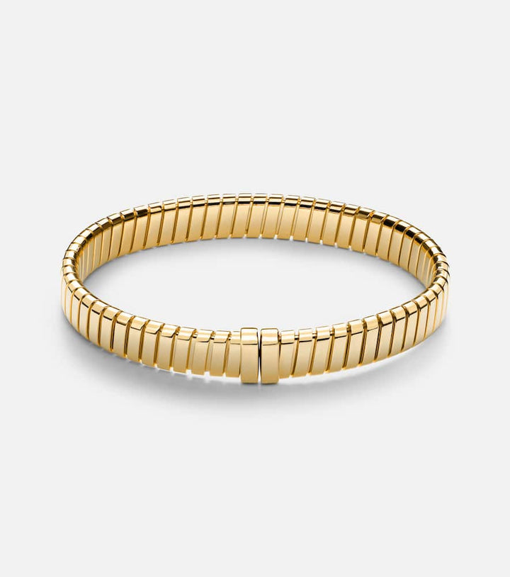 This Bvlgari Tubogas 18kt gold bracelet by Bvlgari is a beautiful and artistic expression of a sleek, modern aesthetic. The bracelet features a fluid, coiling design expertly crafted from 18kt yellow gold. The piece feels both organic and luxurious, a true statement of refined taste and a celebration of uncompromising quality. This bracelet is a versatile accessory that can be worn for both everyday moments and special occasions, symbolizing a confident approach to style.